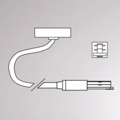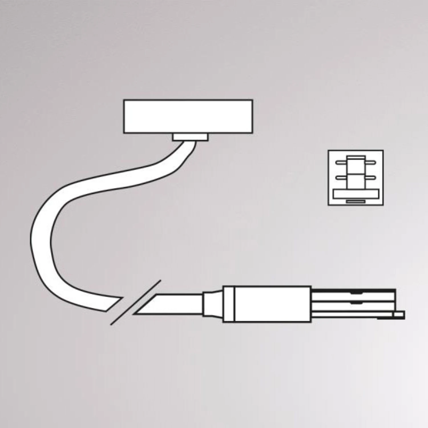 Cette alimentation d’extrémité pour le système de rails électriques biphasés Volare est équipée d’un câble de 2 m et d’un baldaquin. Grâce au câble, l’alimentation des rails est adaptée lorsqu’une position suspendue est choisie ou que la sortie du plafond se trouve à l’écart du rail.