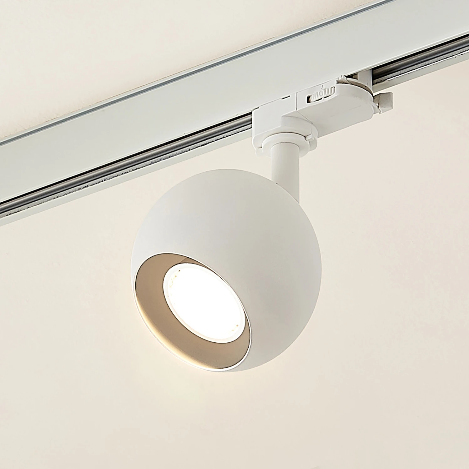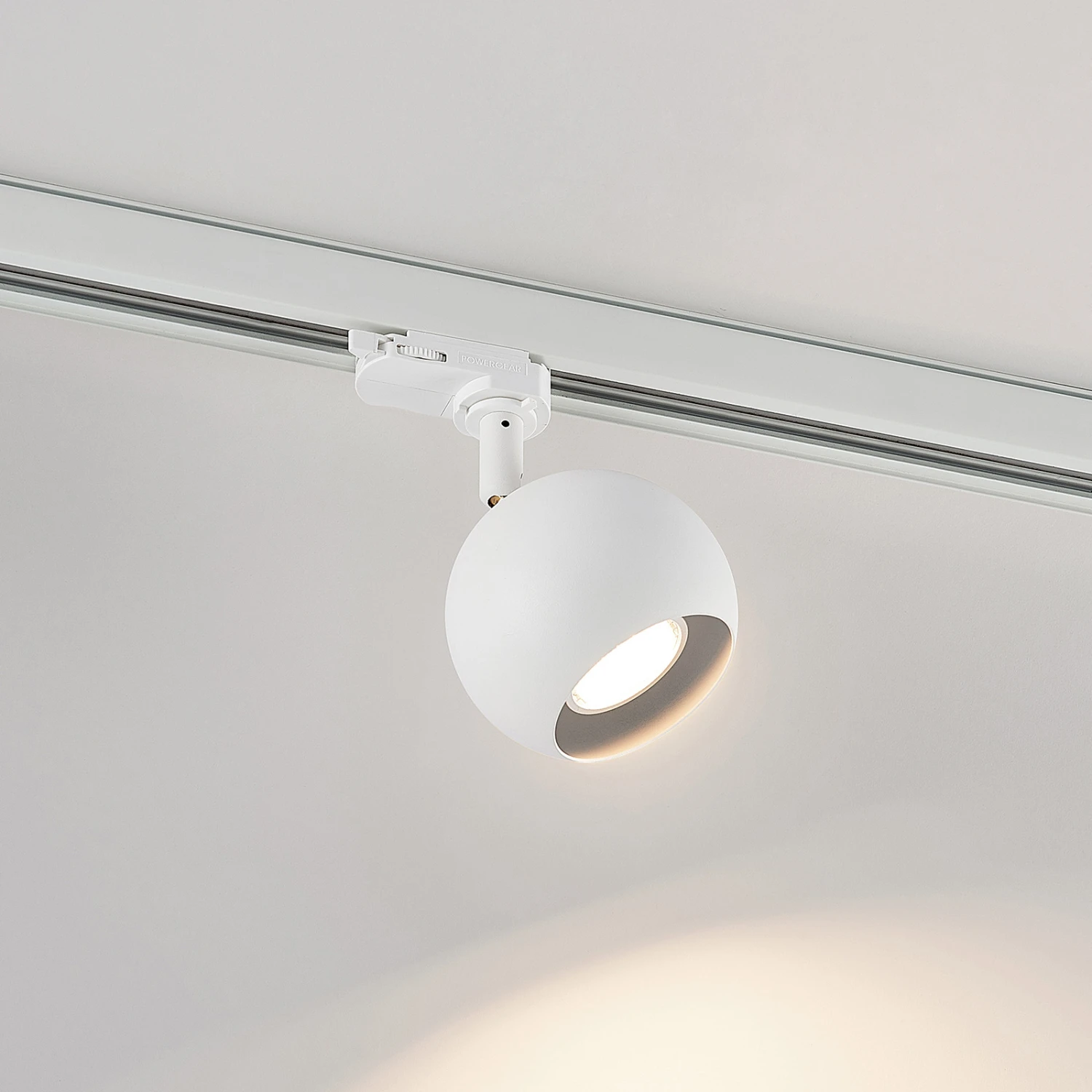 Le spot sur rail Ensar convient parfaitement pour un éclairage raffiné des alentours. Fabriqué en aluminium, il ressemble à une sphère et affiche une couleur blanche. Sa douille accueille une ampoule GU10 et est entouré d’un abat-jour rond. La forme de ce spot permet de créer un éclairage ponctuel, d’autant plus convaincant dans les couloirs. L’installation du projecteur Ensar sur un système de lampes sur rail triphasé permet une utilisation flexible du luminaire, voire une combinaison de plusieurs exemplaires de ce spot ou de différentes sources lumineuses.