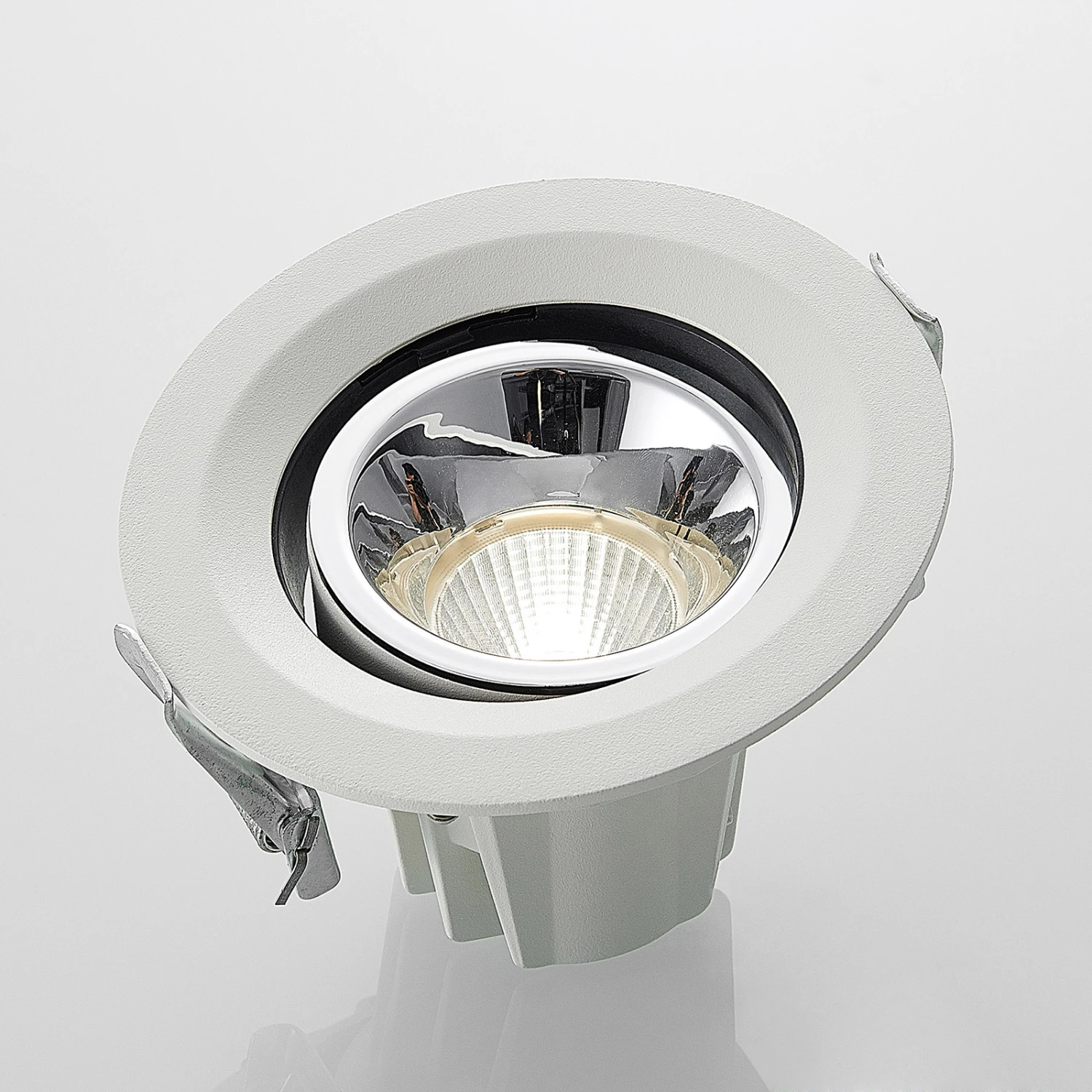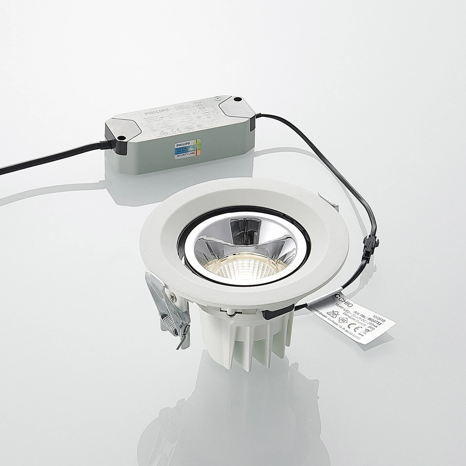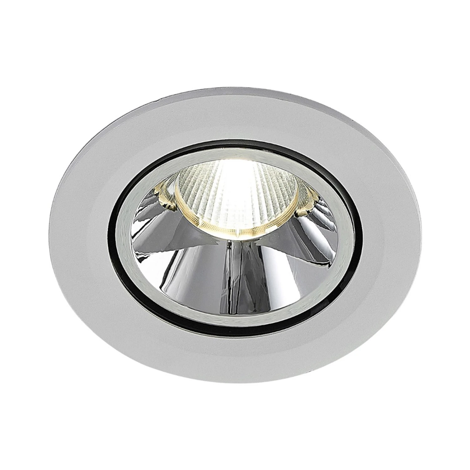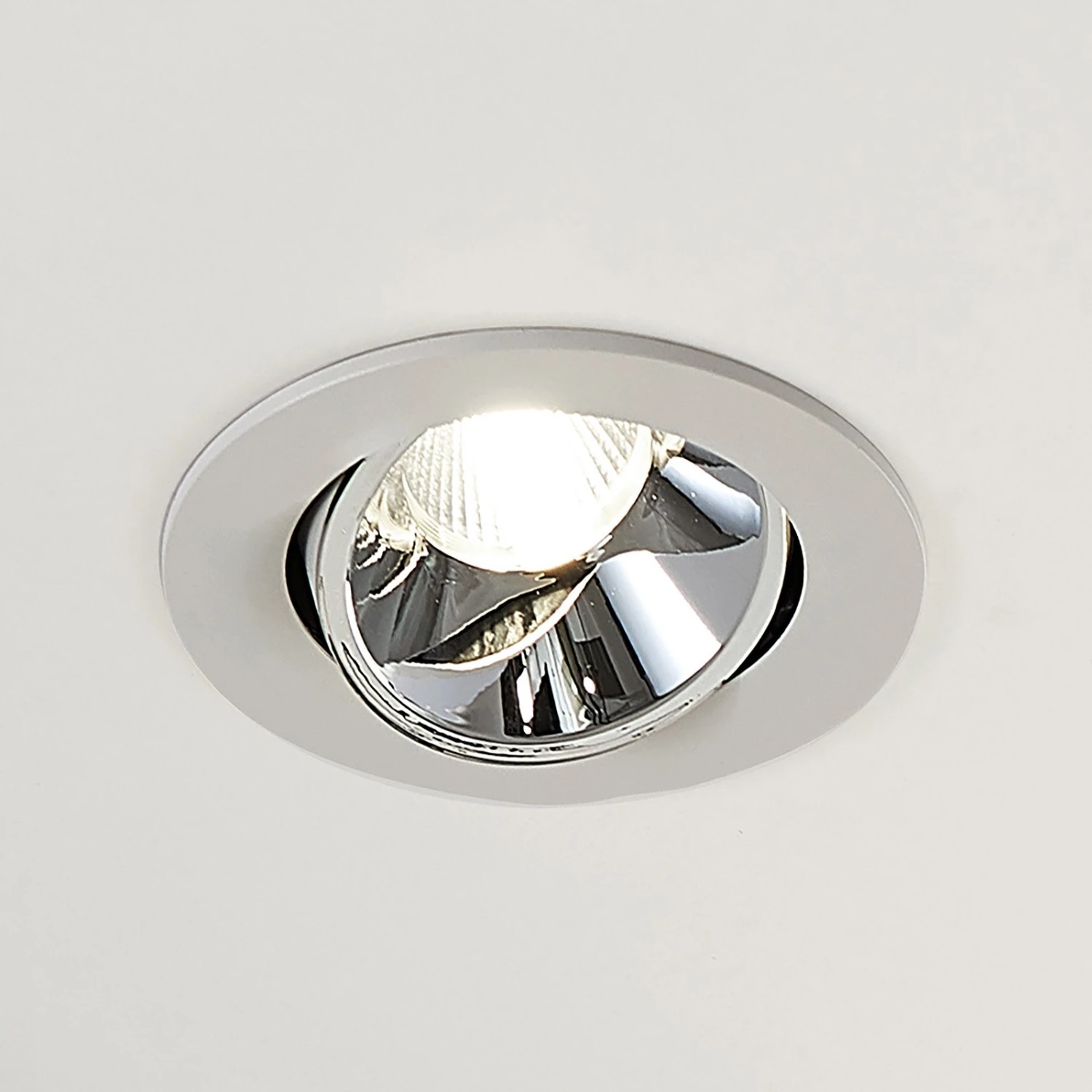 L’angle de rayonnement du downlight moderne Franjo peut varier de 20 à 40°, grâce aux deux réflecteurs fournis, chacun avec un angle de rayonnement différent. Les LED sont logées dans un réflecteur de couleur chrome et éclairent puissamment vers le bas. En même temps, grâce à l’utilisation de la technique LED moderne, le spot encastré peut marquer des points avec une faible consommation d’énergie et une durée de vie plus longue. L’aspect intemporel et discret en blanc fait de ce downlight à LED un projecteur polyvalent qui peut également être utilisé dans le domaine commercial. L’indice de rendu des couleurs est très élevé (CRI>90), de sorte que les couleurs dans la pièce sont reproduites le plus naturellement possible par la lumière LED.