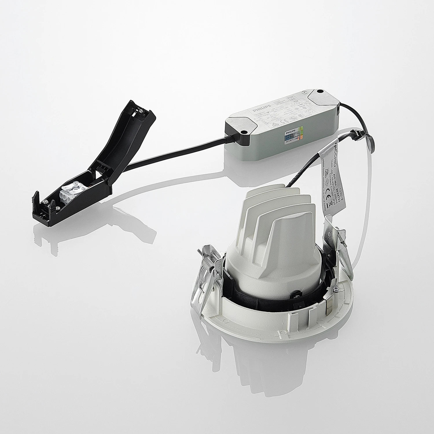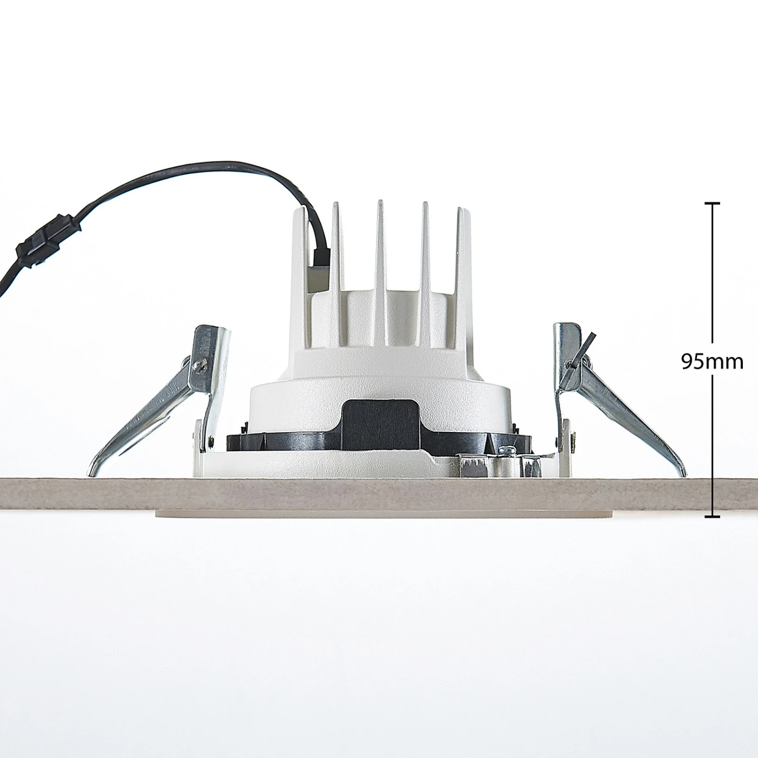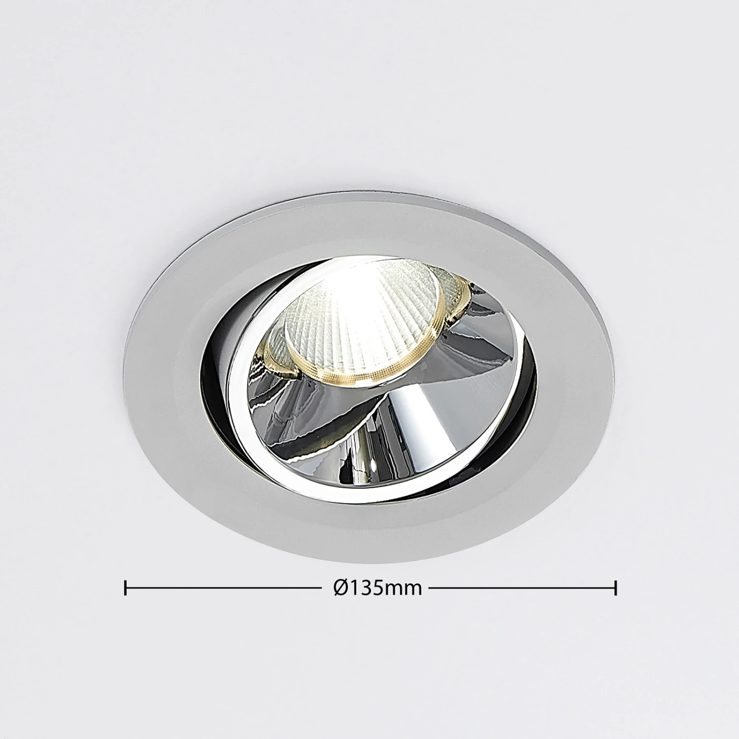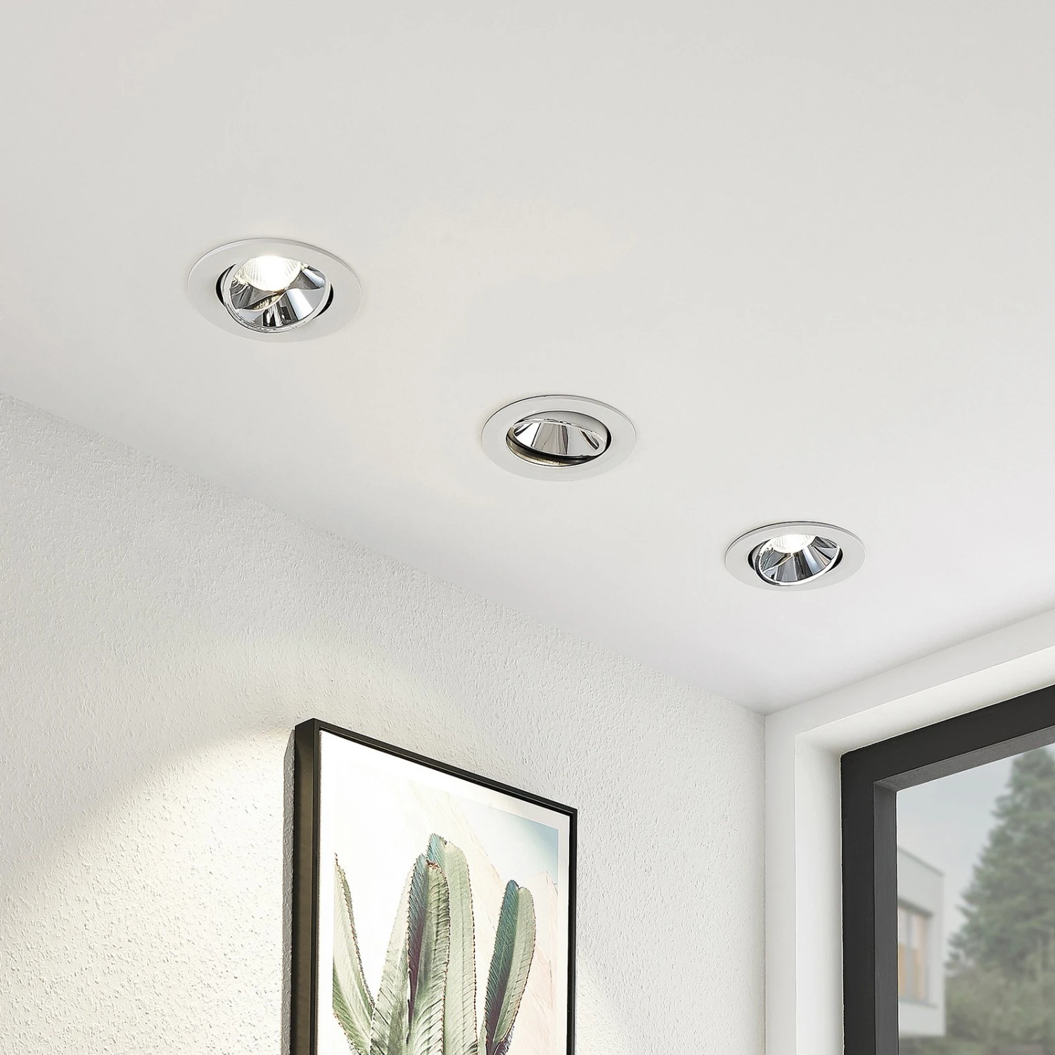 L’angle de rayonnement du downlight moderne Franjo peut varier de 20 à 40°, grâce aux deux réflecteurs fournis, chacun avec un angle de rayonnement différent. Les LED sont logées dans un réflecteur de couleur chrome et éclairent puissamment vers le bas. En même temps, grâce à l’utilisation de la technique LED moderne, le spot encastré peut marquer des points avec une faible consommation d’énergie et une durée de vie plus longue. L’aspect intemporel et discret en blanc fait de ce downlight à LED un projecteur polyvalent qui peut également être utilisé dans le domaine commercial. L’indice de rendu des couleurs est très élevé (CRI>90), de sorte que les couleurs dans la pièce sont reproduites le plus naturellement possible par la lumière LED.