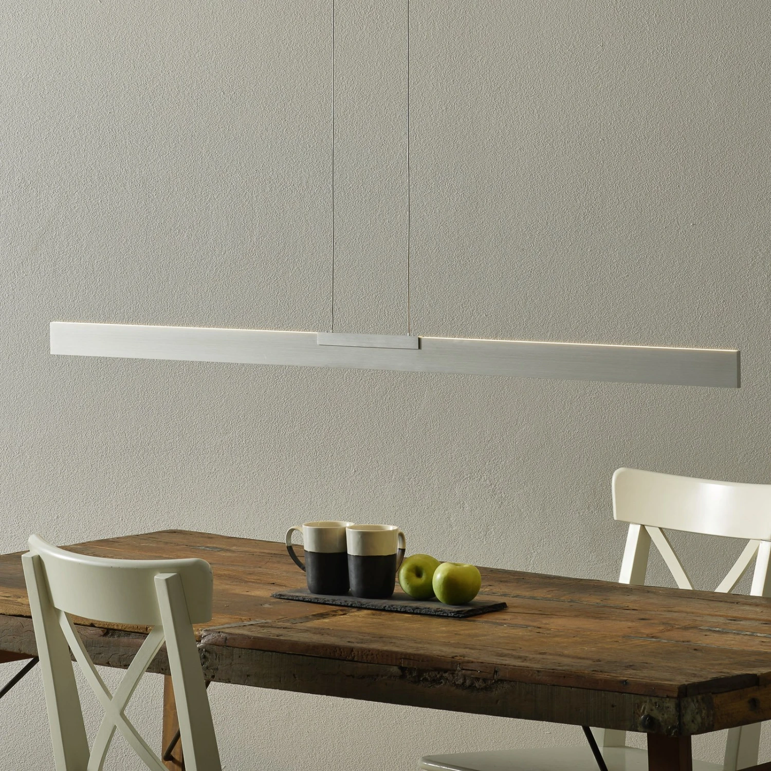 Le pendule moderne de Bopp convainc par son design simple et élégant ainsi que par sa fonctionnalité bien pensée. Fabriquée en aluminium de haute qualité en Allemagne, la lampe pendante Nano LED est dotée de deux bandes LED, qui sont fixées sur les côtés supérieur et inférieur du corps de la lampe. Le luminaire suspendu à LED émet une lumière directe vers le bas et une lumière ambiante indirecte vers le haut sans éblouissement. La température de couleur des deux lumières peut être modifiée séparément au moyen d’un variateur tactile intégré. L’agréable lumière blanche et chaude des LEDs devient encore plus chaude lorsqu’elle est atténuée, créant une atmosphère chaleureuse. Sur demande, les lumières supérieure et inférieure peuvent être commutées séparément en différentes températures de couleur, créant ainsi des scénarios d’éclairage totalement individuels.
