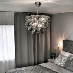 Suspension extravagante Gross – composée de 37 boules de verreSi vous souhaitez placer au centre de la pièce une suspension qui attire tous les regards, la suspension Gross est faite pour vous. La suspension est composée de 37 boules de verre individuelles qui, disposées de manière apparemment aléatoire, forment l’abat-jour pour les huit ampoules G9. De l’intérieur, les ampoules diffusent vers l’extérieur une lumière brillante et scintillante grâce à la surface brillante des boules de verre. Convient pour le salon, la chambre à coucher, mais aussi pour les espaces publics représentatifs.