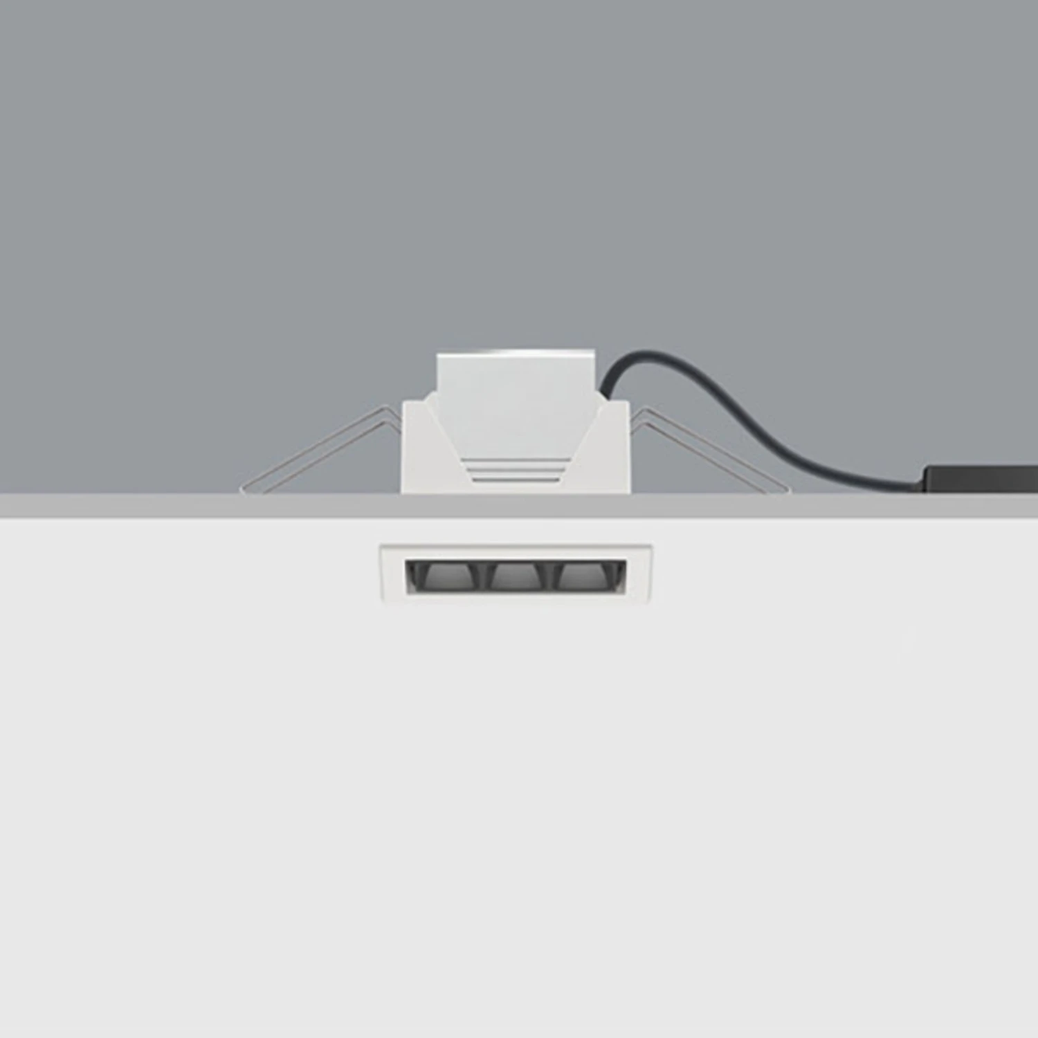Le downlight encastré rectangulaire Compar assure un éclairage général et de travail de grande surface, par exemple dans les bureaux modernes. Il est équipé de LED haute puissance dont la lumière est émise sous la forme d’un large cône par une technique de lentille en polymère optique et dont l’éblouissement est réduit par une grille de défilement. La construction compacte, un appareillage externe pouvant être placé de manière variable au-dessus du faux-plafond, les ressorts de montage et le raccordement au moyen d’un bornier enfichable limitent les frais d’installation. La sortie de lumière peut être réglée à l’aide d’un variateur externe à coupure de phase.