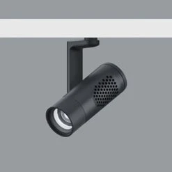 Avec un faisceau lumineux de largeur moyenne, le projecteur sur rail Eclipse est idéal pour un éclairage adapté à la situation des surfaces de vente et des galeries. La lumière des LED haute puissance intégrées est diffusée par une optique collimatrice en polymère optique et une lentille darklight. La tête cylindrique en fonte d’aluminium est maintenue par un bras qui est mobile aussi bien au niveau de la fixation à la tête que de l’adaptateur de rail, ce qui permet un pivotement de 270° et une rotation de 360°. La commande se fait de manière très moderne avec l’application Casambi sur tablette/smartphone.