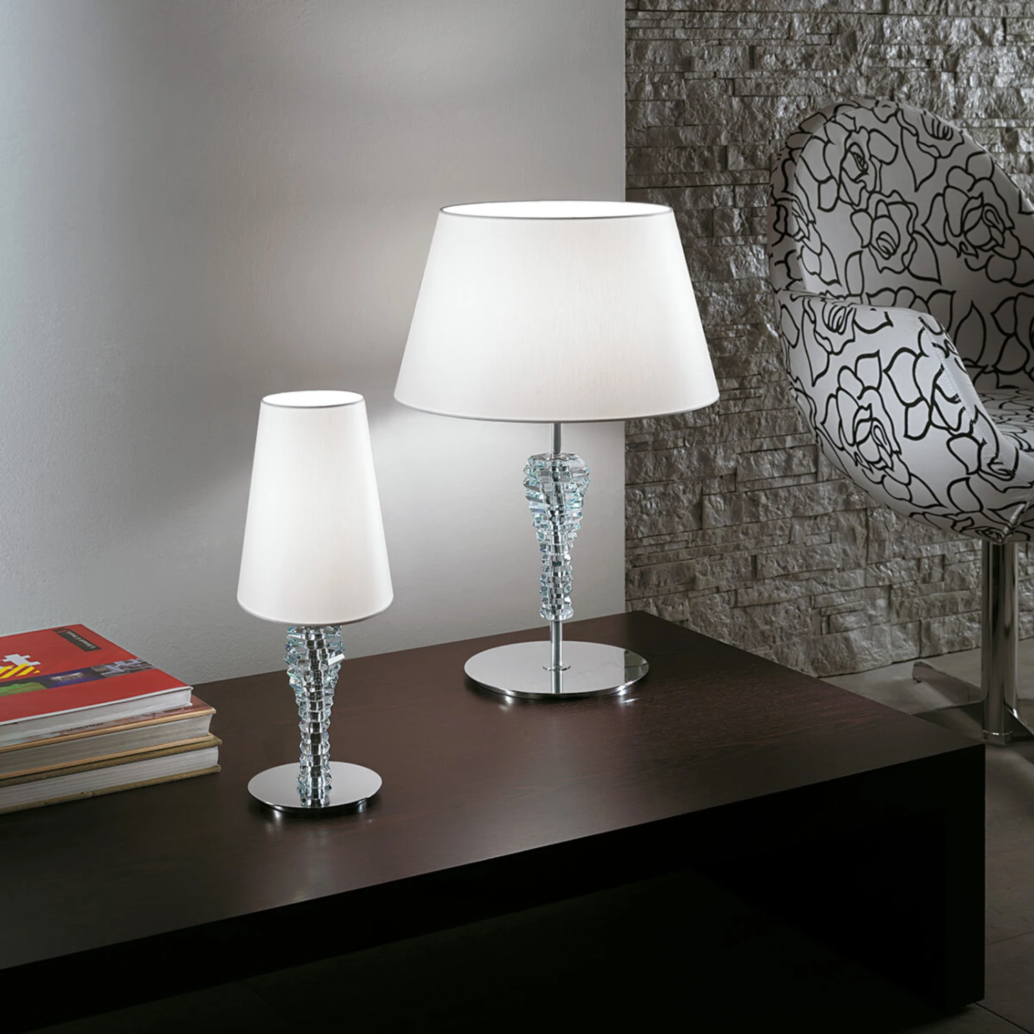 Lampe de table Crystal avec abat-jour textile blanc – hauteur 51 cmCette lampe de table exclusive made in Italy trouvera à coup sûr une place dans de nombreux intérieurs, où la beauté de son design sera pleinement mise en valeur et où elle pourra contribuer à un concept d’éclairage réussi grâce à sa diffusion de lumière accentuée par la décoration en cristal. La lampe de table Crystal se combine avec de nombreuses couleurs d’aménagement et de styles d’habitation.