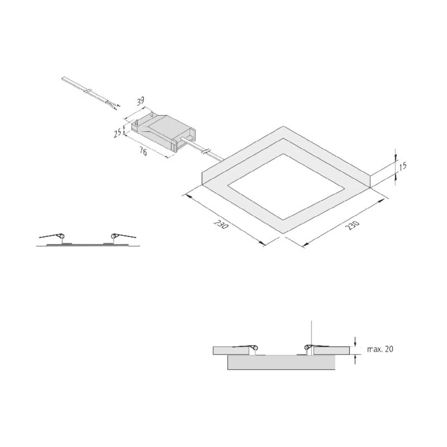 Le plafonnier à LED FQ 65/205 est flexible en termes d’installation et de taille du diamètre d’encastrement. Le luminaire carré en plastique avec un cadre blanc et un diffuseur satiné peut être monté au plafond, mais peut également être encastré et s’adapter à des trous d’un diamètre de 6,5 à 20,5 cm grâce à l’équipement avec un ressort de montage réglable. Il peut être installé dans des panneaux de plafond jusqu’à 2 cm d’épaisseur. Le luminaire à LED à haut rendement énergétique est équipé d’un bornier avec câblage traversant intégré, de sorte qu’il peut être raccordé directement, qu’il s’agisse d’un seul luminaire pour éclairer une petite zone ou d’un luminaire groupé pour éclairer une grande pièce ou un long couloir.