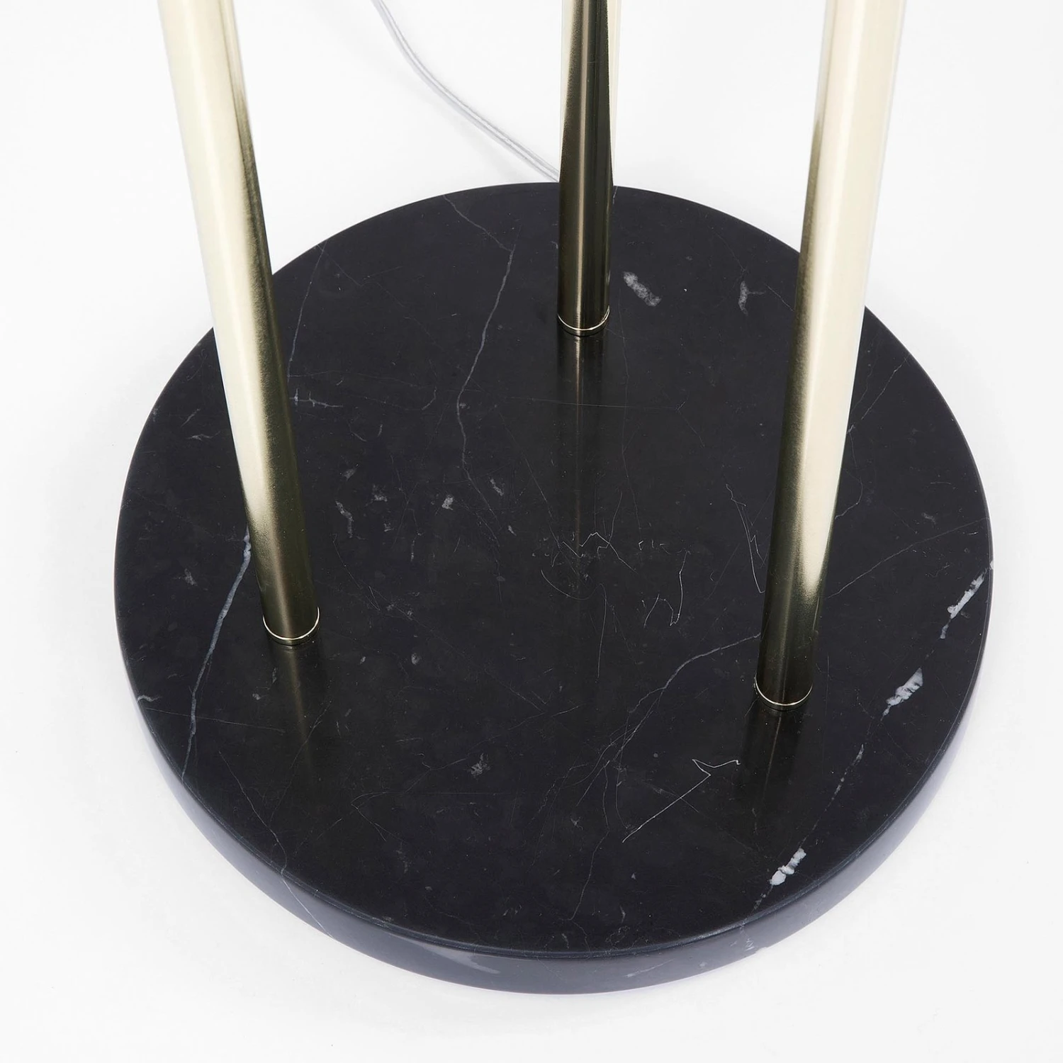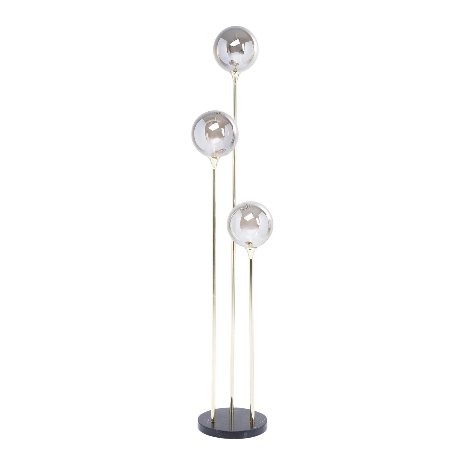 Le lampadaire Al Capone Tre est très élégant et attrayant même lorsqu’il est éteint. C’est ce qui en fait un élément de décoration particulièrement intéressant. Le socle rond, noir et stable en marbre fournit la base et donne un support sûr. Au total, trois tiges d’acier en ressortent, qui sont dotées d’une couleur dorée brillante. Les poteaux ont des longueurs différentes, de sorte que la lampe apparaît individuellement et harmonieusement coordonnée.