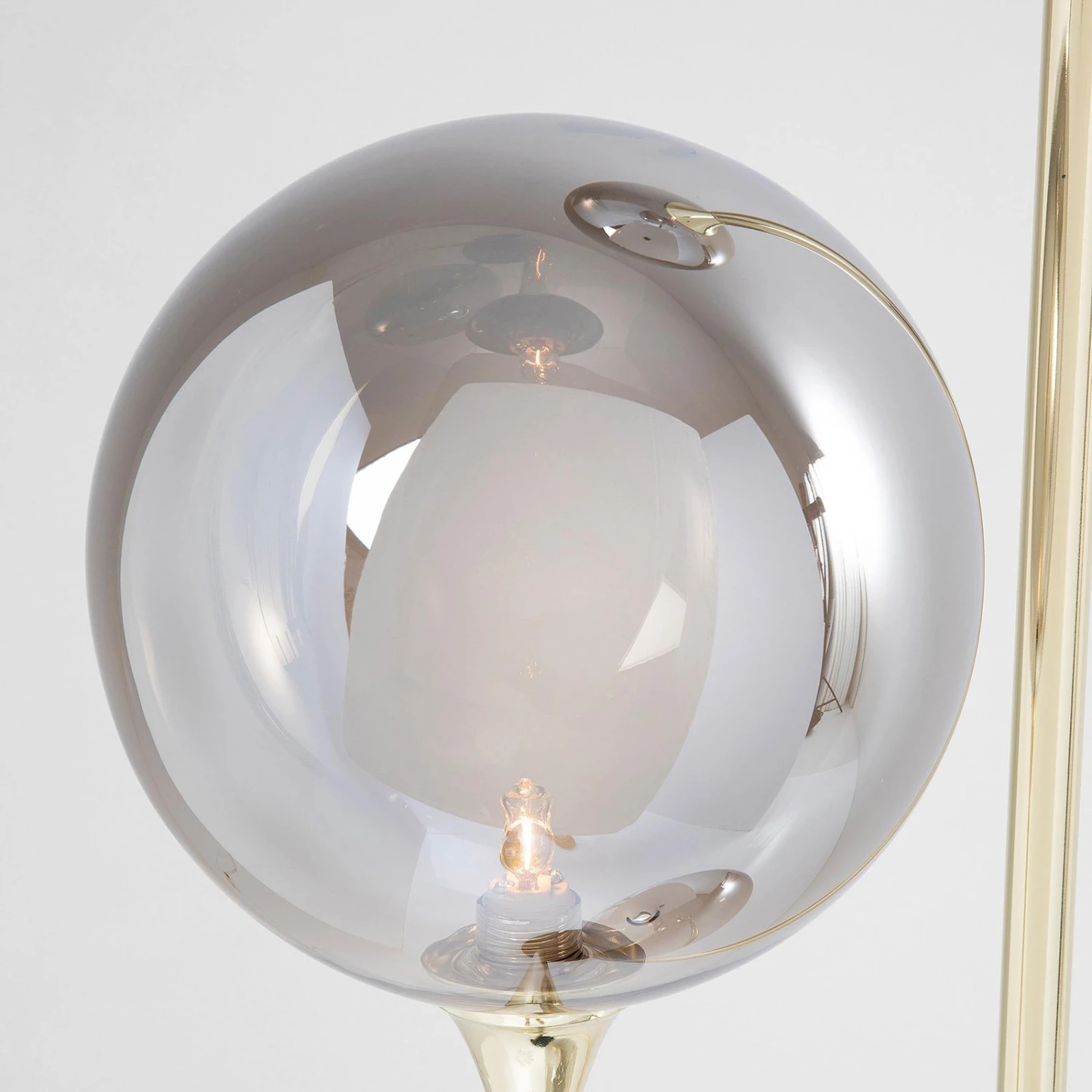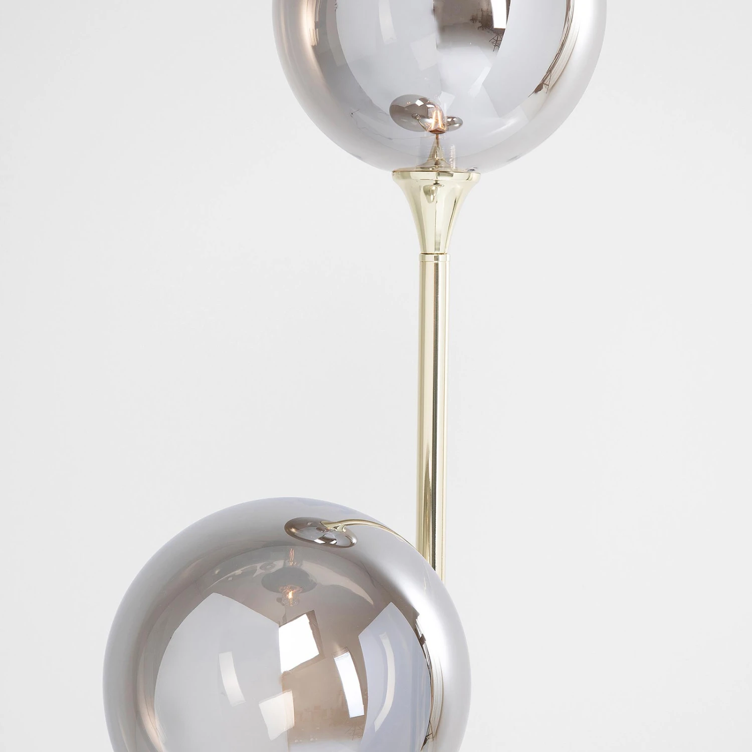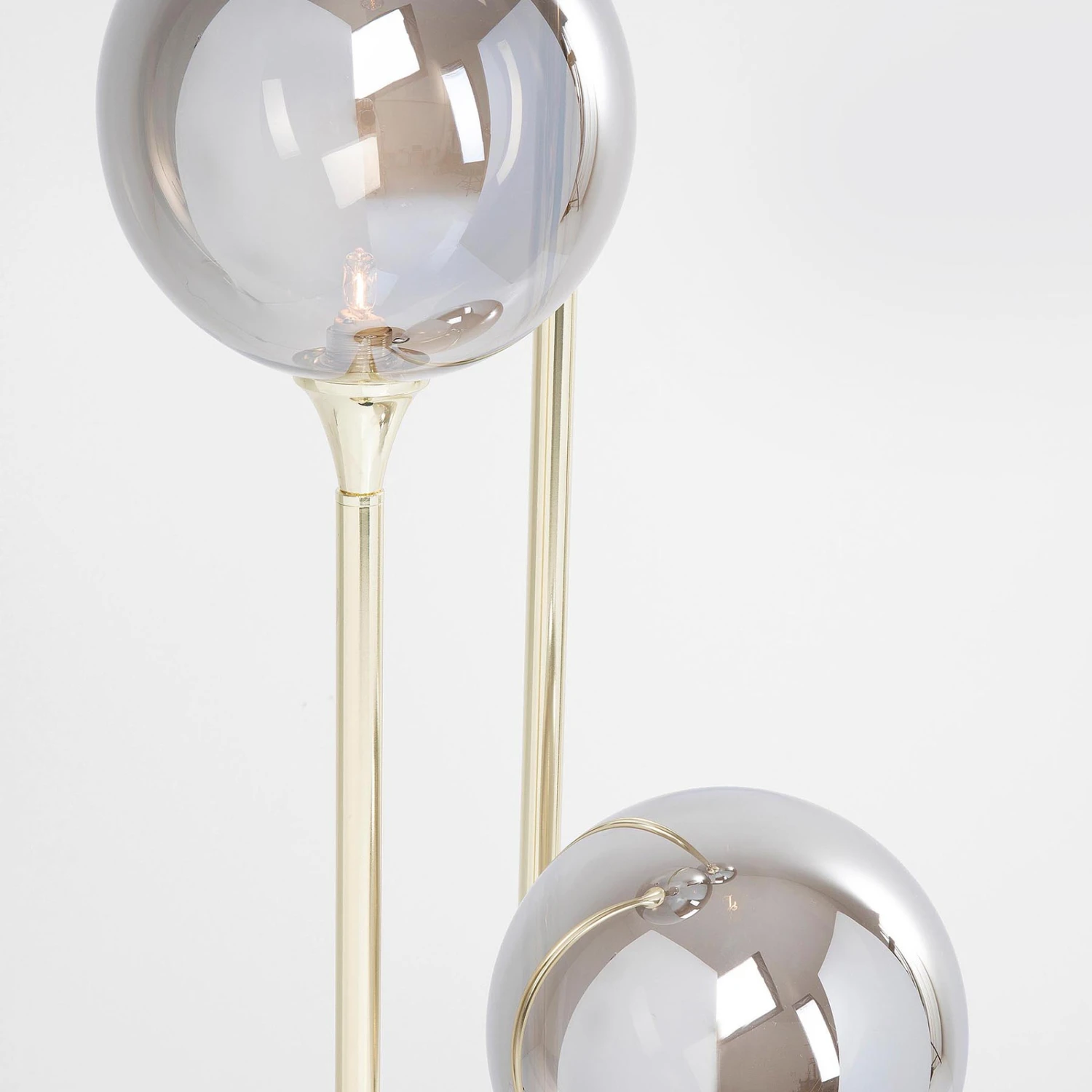 La prise G9 est située à l’extrémité de chacun d’eux. Celle-ci est entourée d’une sphère de verre légèrement colorée, qui permet de voir directement la lampe. Le verre donne un effet de lumière sur toute la surface, il peut briller sans entrave dans toutes les directions de la pièce.