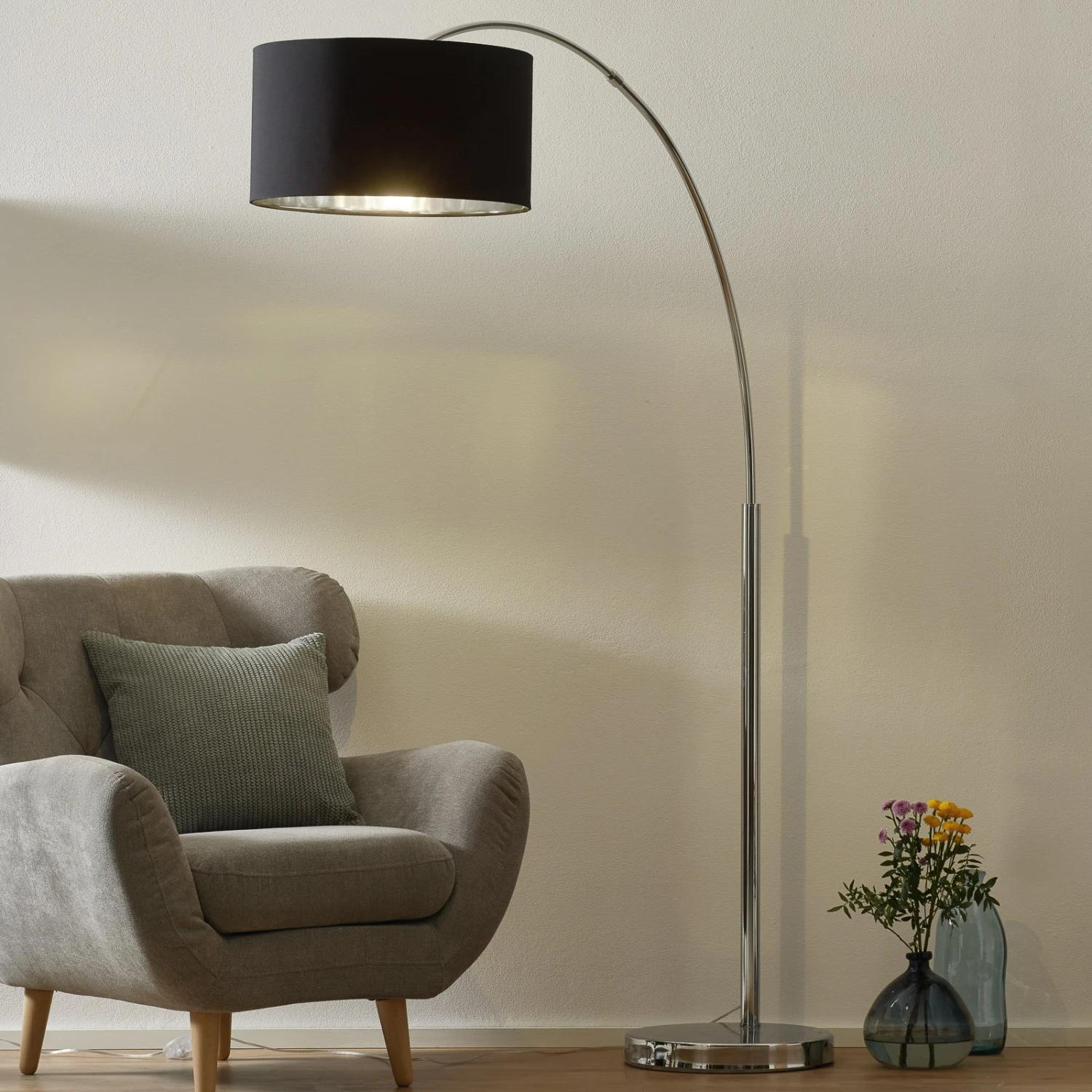Le lampadaire arqué Mara sera bien mis en valeur dans des grands séjours. Il y diffusera une lumière intense et homogène qui éclairera par exemple une table ou un espace de lecture prés du canapé. Le design en chrome brillant et en tissu noir mat crée des accents modernes, sans entrer en collision avec l’intérieur existant. Mara – une lampe arquée qui conviendra dans bien des contextes différents.
