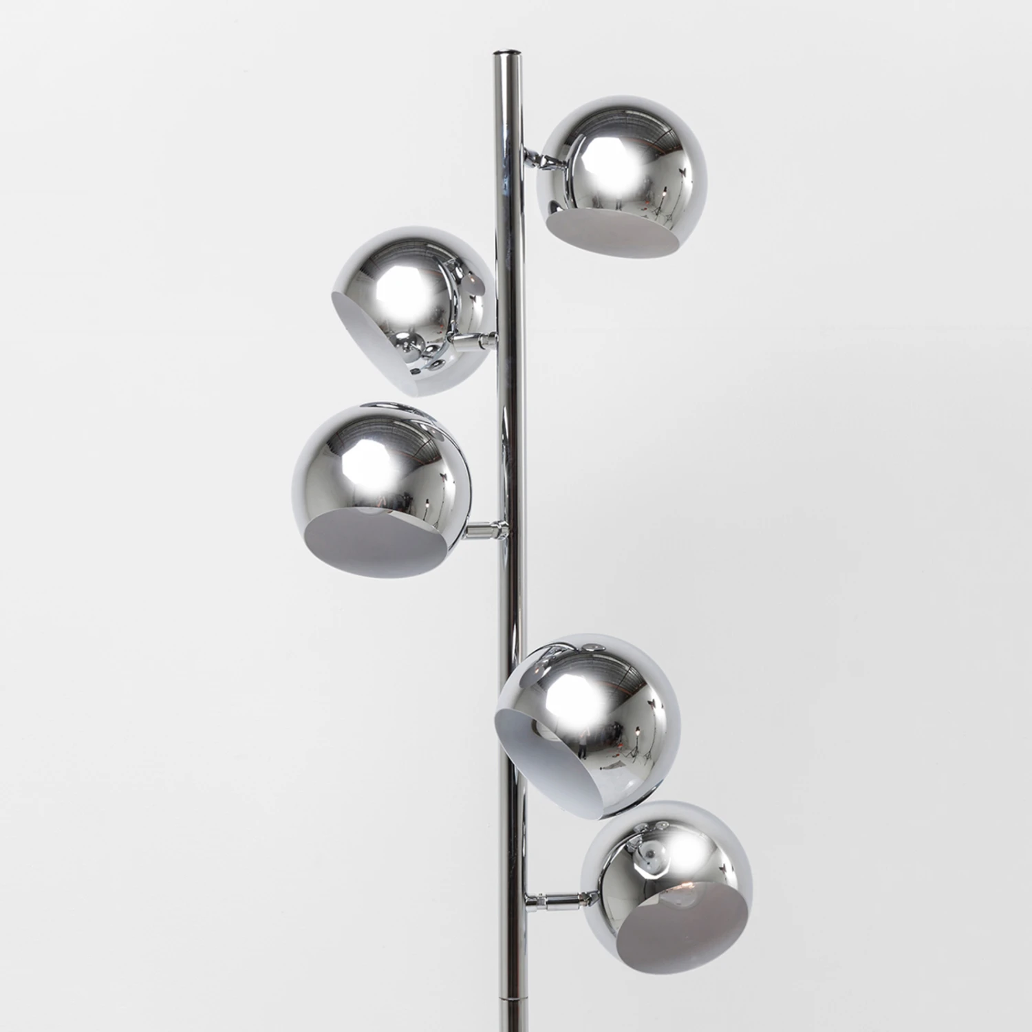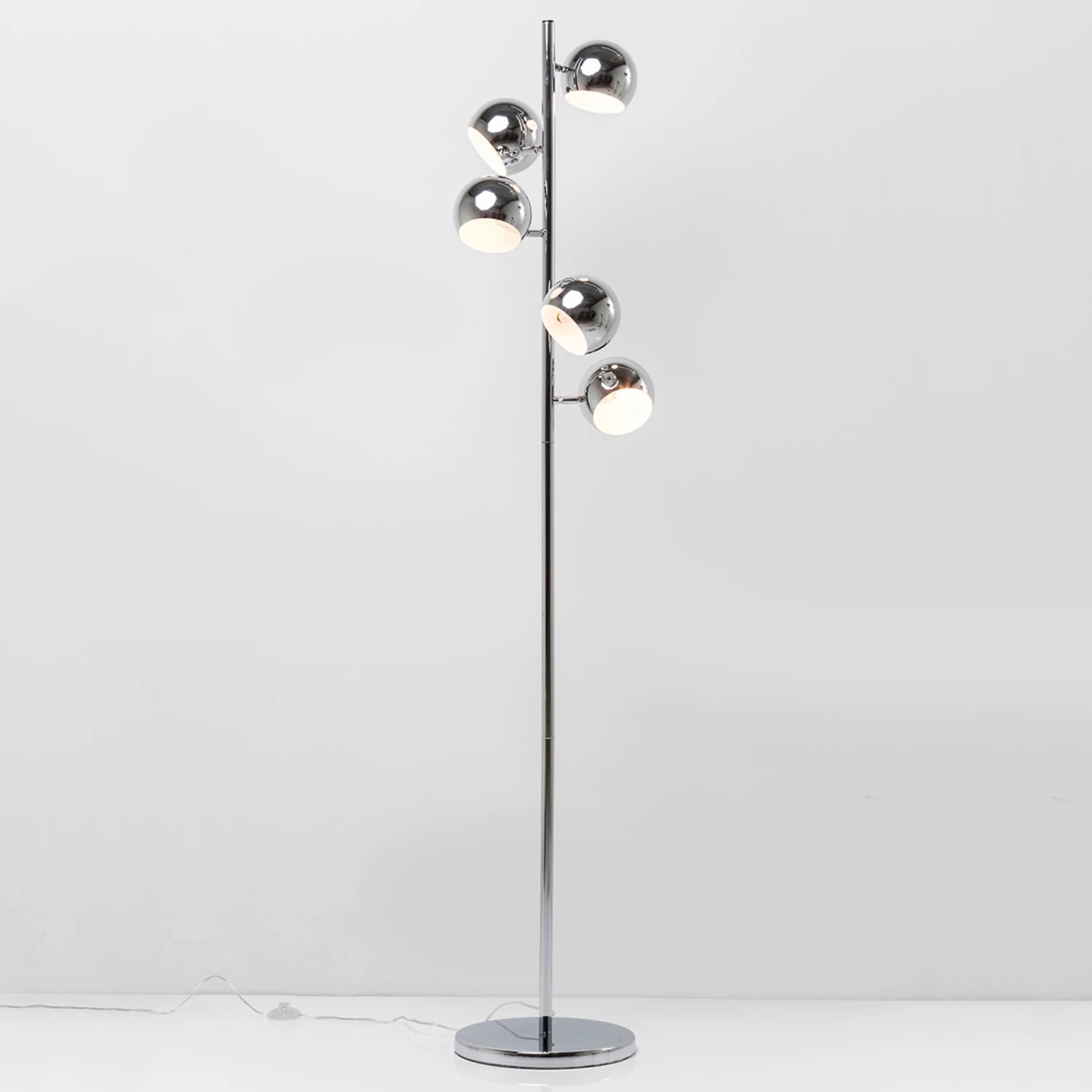 Lampadaire Calotta brillant avec cinq abat-jour rotatifs en métal chromé