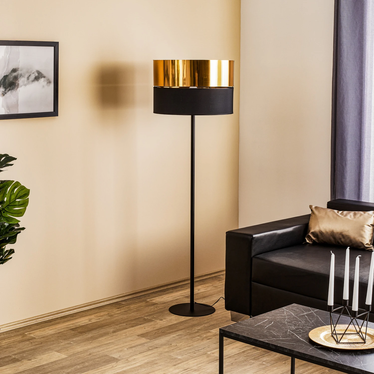Lampadaire Hilton, Noir/doré