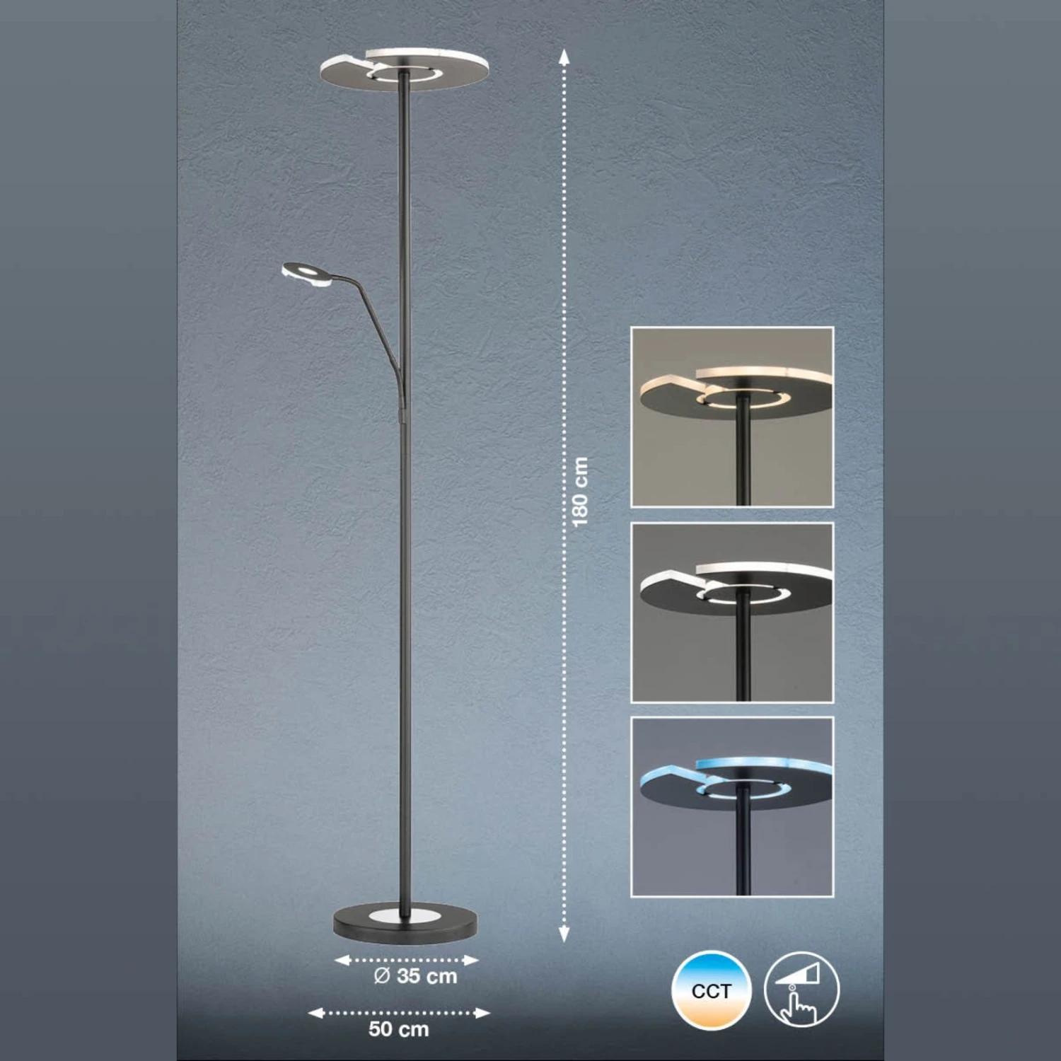 Lampadaire Indirect LED Dent à Liseuse, CCT, Noir