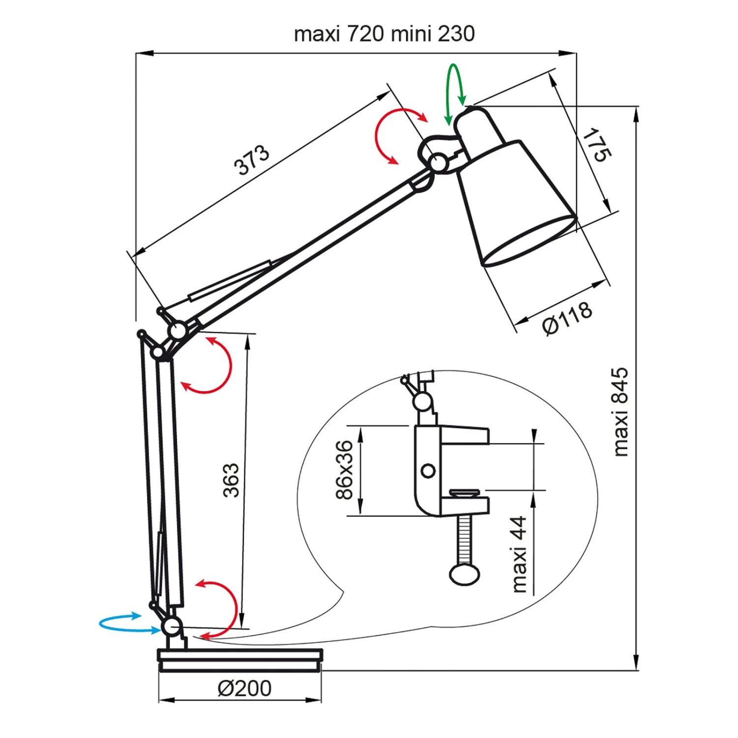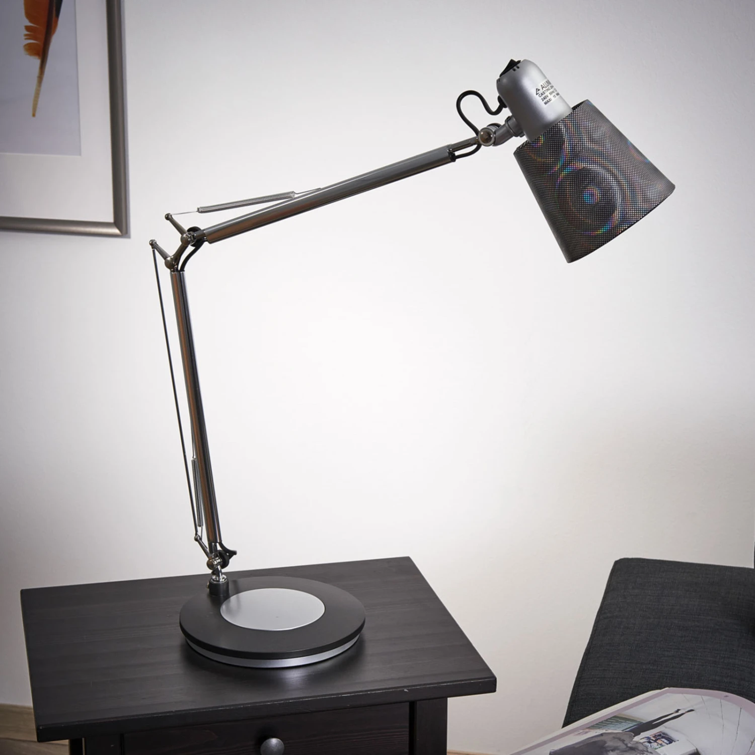 | Particularité(s) | Bras réglable au moyen de 3 articulations, abat-jour pivotant |