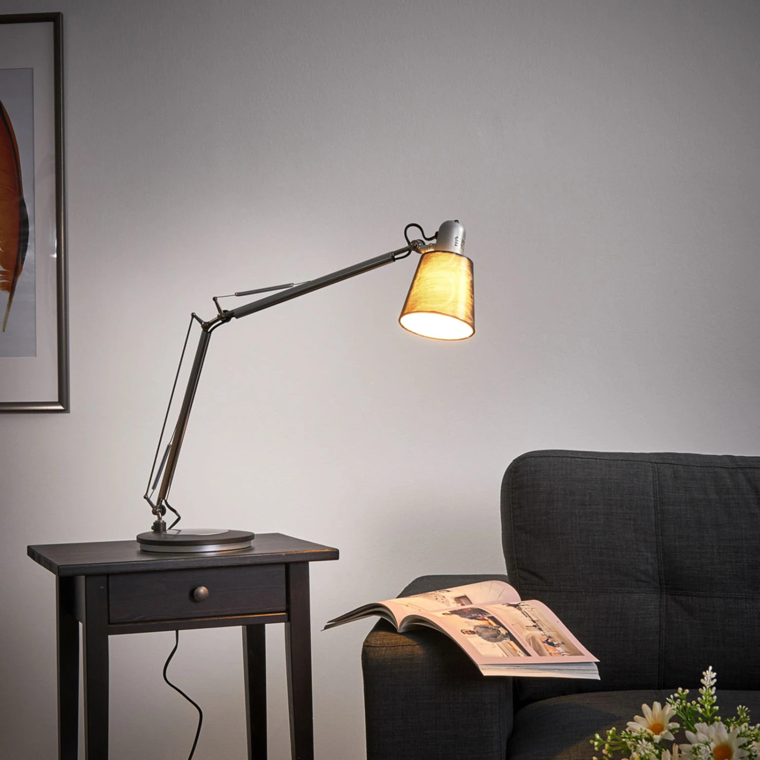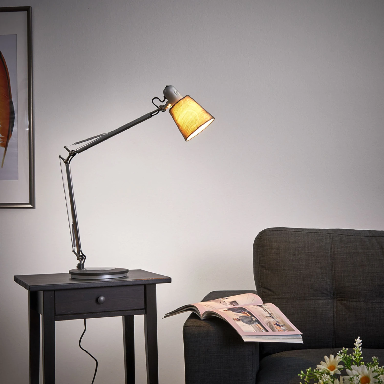 Lampe de table Casting 2 – une source de lumière flexible La lampe de table Casting 2 réunit de nombreux avantages. Elle peut être utilisée soit comme lampe de table avec pied, soit comme lampe à pince (pince de table fournie) et atteint – une fois redressée – une hauteur maximale de 84,5 cm. Le support est doté de trois articulations, ce qui permet d’orienter la lumière de manière très flexible. Elle est équipée d’un interrupteur. L’ampoule est également comprise dans la livraison