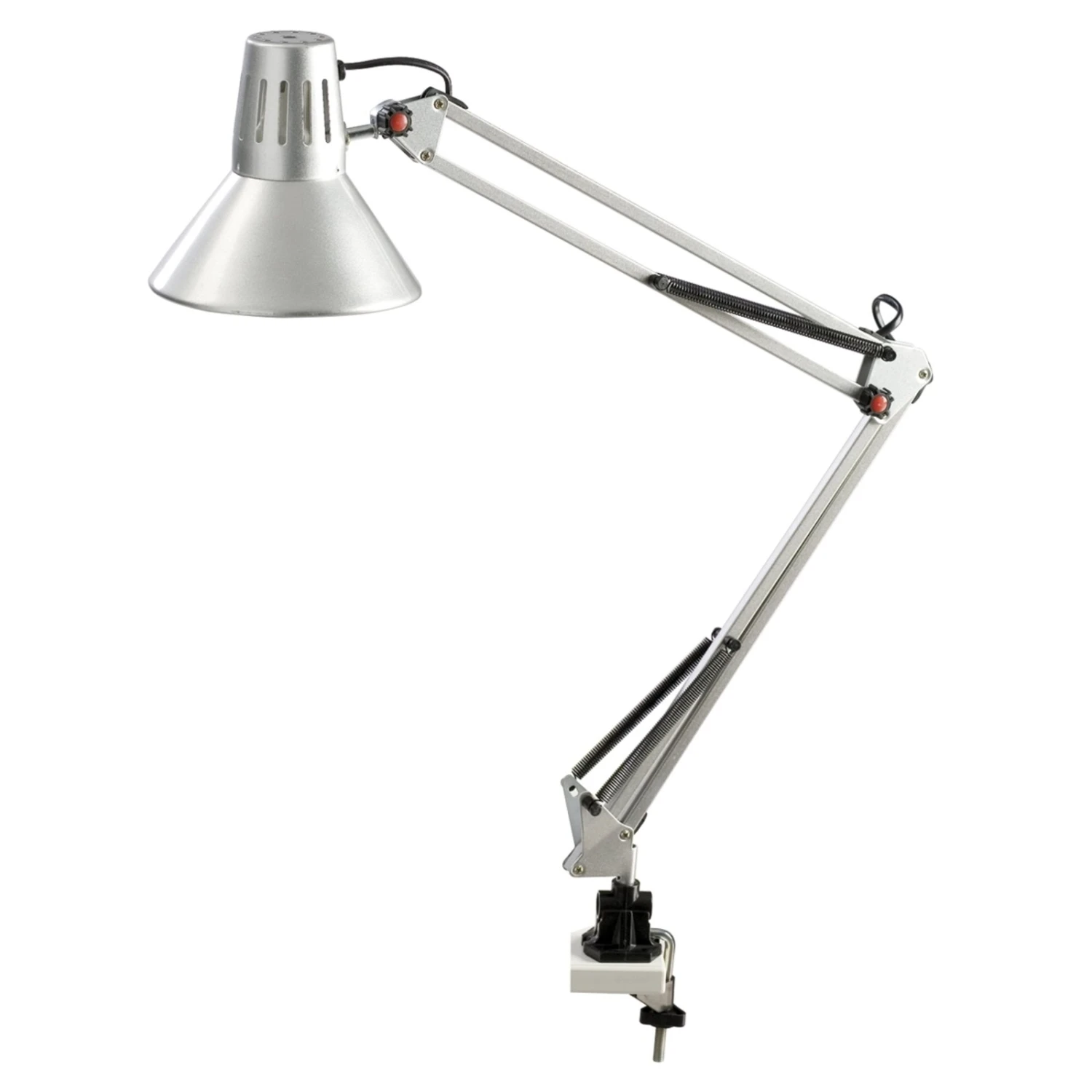 Lampe de bureau classique en métal, dotée d’un bras flexible à double articulation et d’une pince de fixation (pince de fixation en matériau synthétique, l’écart maximum de la pince est de 40 mm).