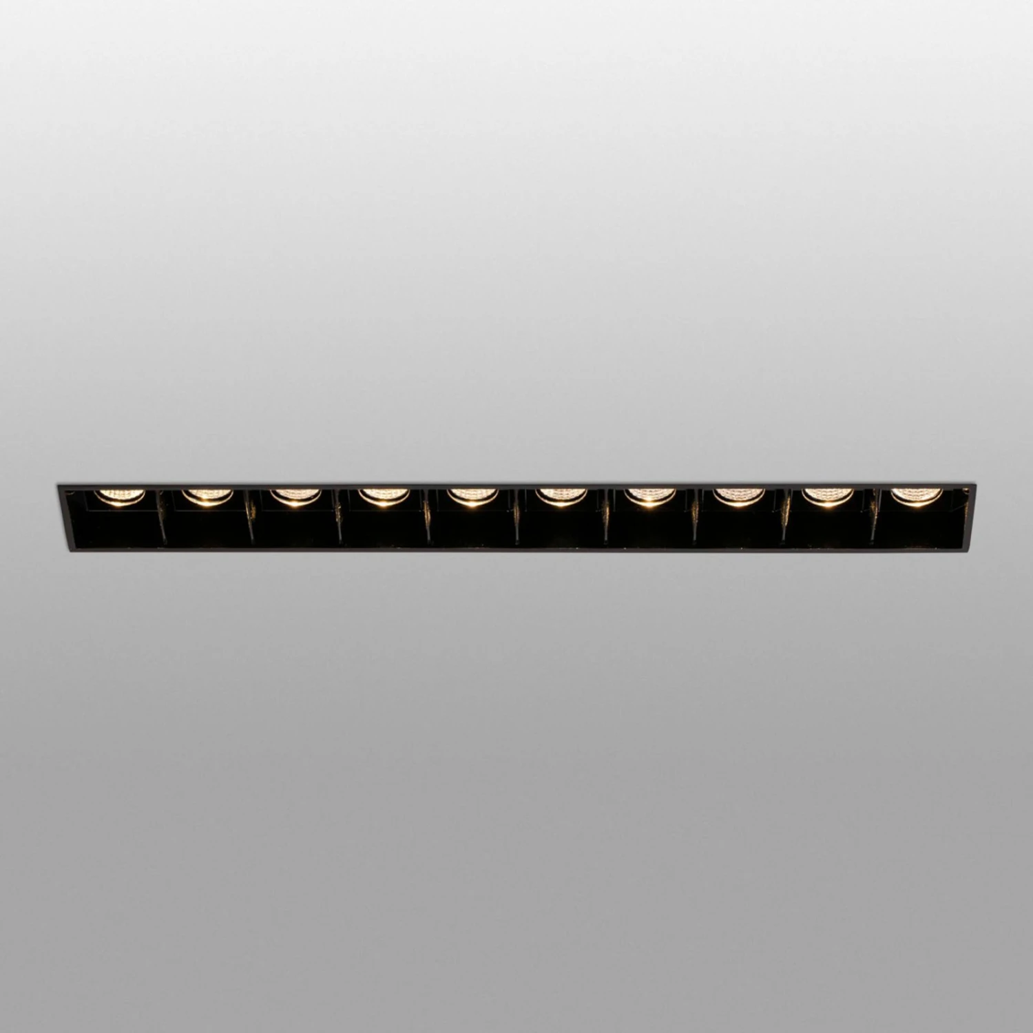 Dans les espaces commerciaux et privés, ce spot LED encastrable Troop Trimless au design moderne peut être encastré à fleur de plafond ou de mur pour éclairer des zones ciblées. Les LED intégrées diffusent un éclairage blanc chaud qui se distingue par un très bon indice de rendu des couleurs (Ra>90), de sorte que le luminaire convient également très bien à la présentation de marchandises.