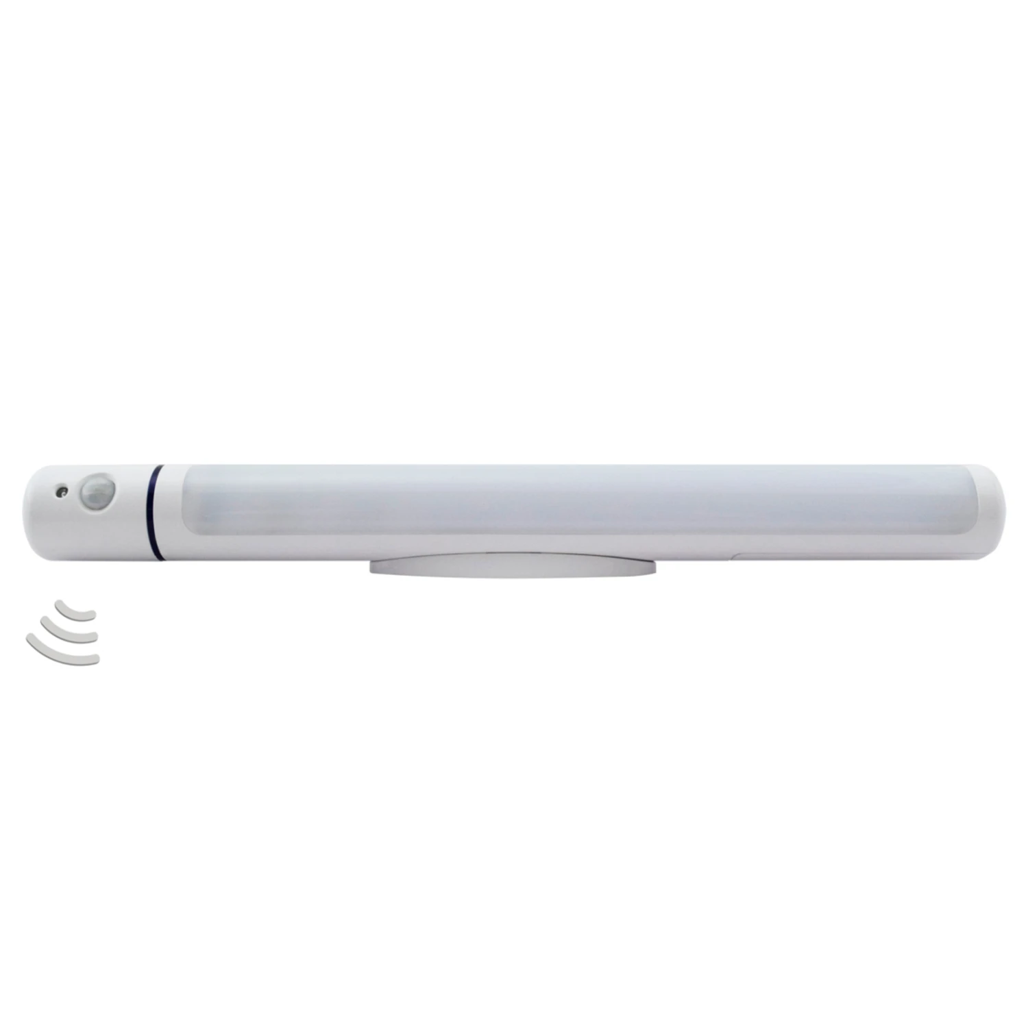 Lampe LED sous armoire Lightstick à piles avec capteurPour éclairer par exemple une zone sous une armoire dans la cuisine ou le salon, la lampe LED sous armoire Lichtstick à piles peut être simplement collée. Un raccordement électrique n’est pas nécessaire, car trois piles AA (non comprises) alimentent les LED en énergie. L’allumage et l’extinction peuvent se faire via l’interrupteur ou le capteur, la lampe est en outre équipée d’un capteur crépusculaire pouvant être activé ou désactivé. Couleur de la lumière des LED : lumière du jour (6.000 K).