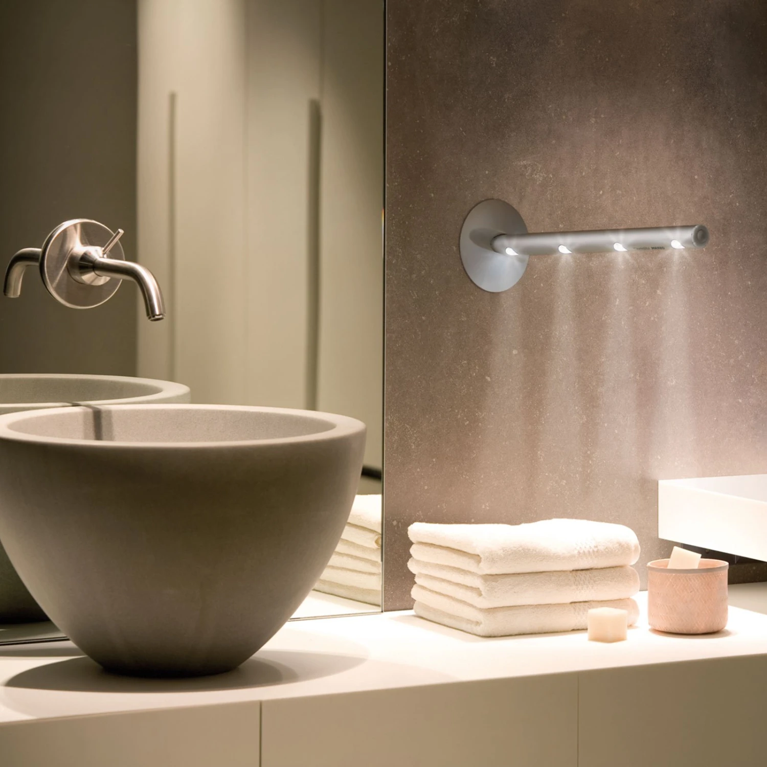 Le tube lumineux LEDstixx offre une forme d’éclairage LED belle et originale. Grâce à la plaque de fixation, il peut être installé sur presque tous les objets et toutes les surfaces : via l’aimant intégré, avec une surface collante pratique ou avec trois vis. Par ailleurs, le tube lumineux peut se fixer à l’horizontale et à la verticale dans le support et peut même pivoter sur son axe pour garantir une orientation flexible de la lumière. Ainsi, rien ne s’oppose à une intégration élégante et discrète du luminaire dans chaque aménagement ou environnement : sur une table d’appoint, un placard de cuisine, une étagère, un miroir, comme lumière d’orientation, liseuse ou lampe de travail, « bougie de table », pour décorer des tableaux, des vases, etc. 3 piles AAA fournies dans la livraison.