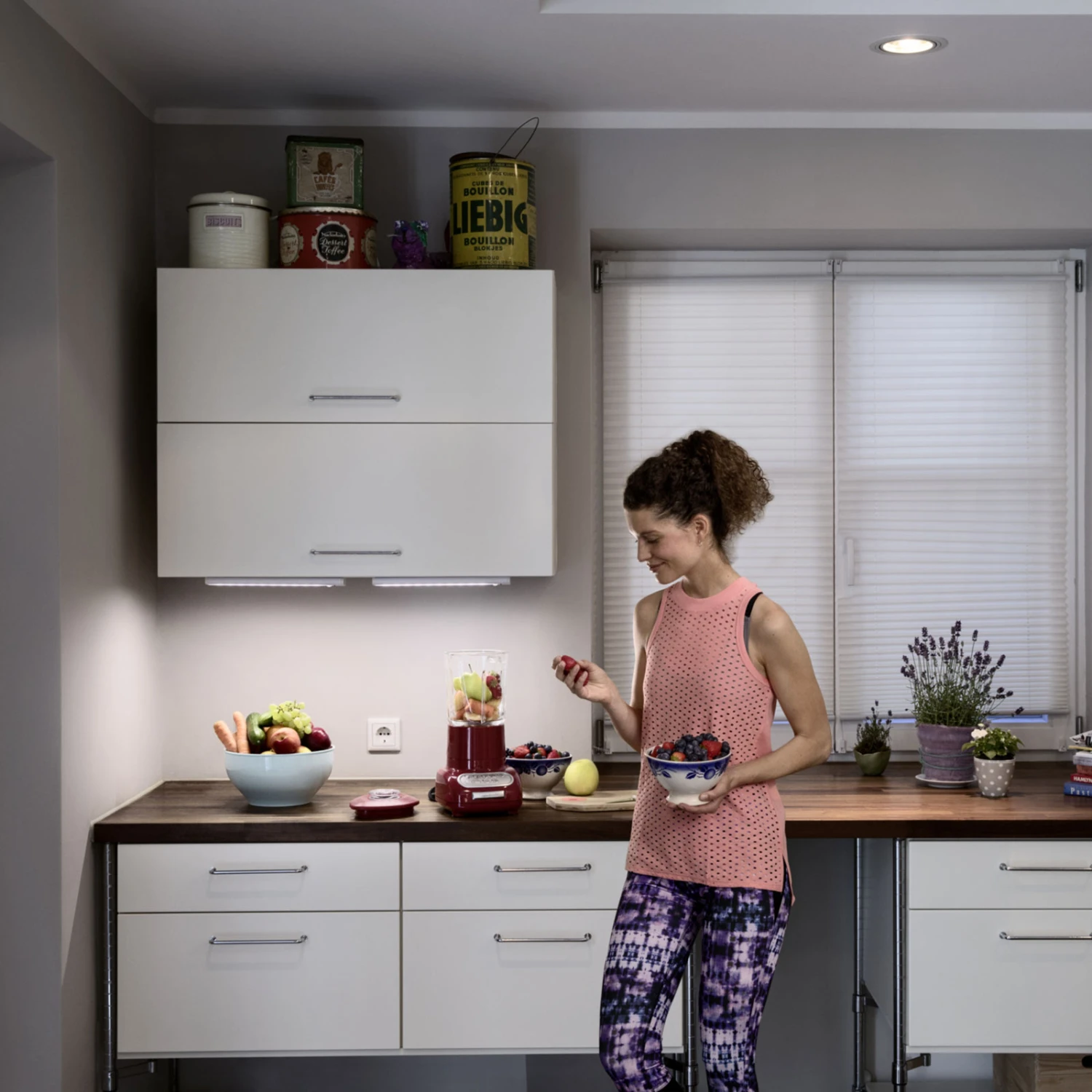 Le boîtier en aluminium de la lampe d’appoint est léger et stable, disponible en quatre tailles et peut être fixé facilement et rapidement sur presque toutes les surfaces avec du ruban adhésif ou des vis. Un design attrayant et un éclairage cool et fonctionnel vont donc de pair avec cette lampe de meuble.