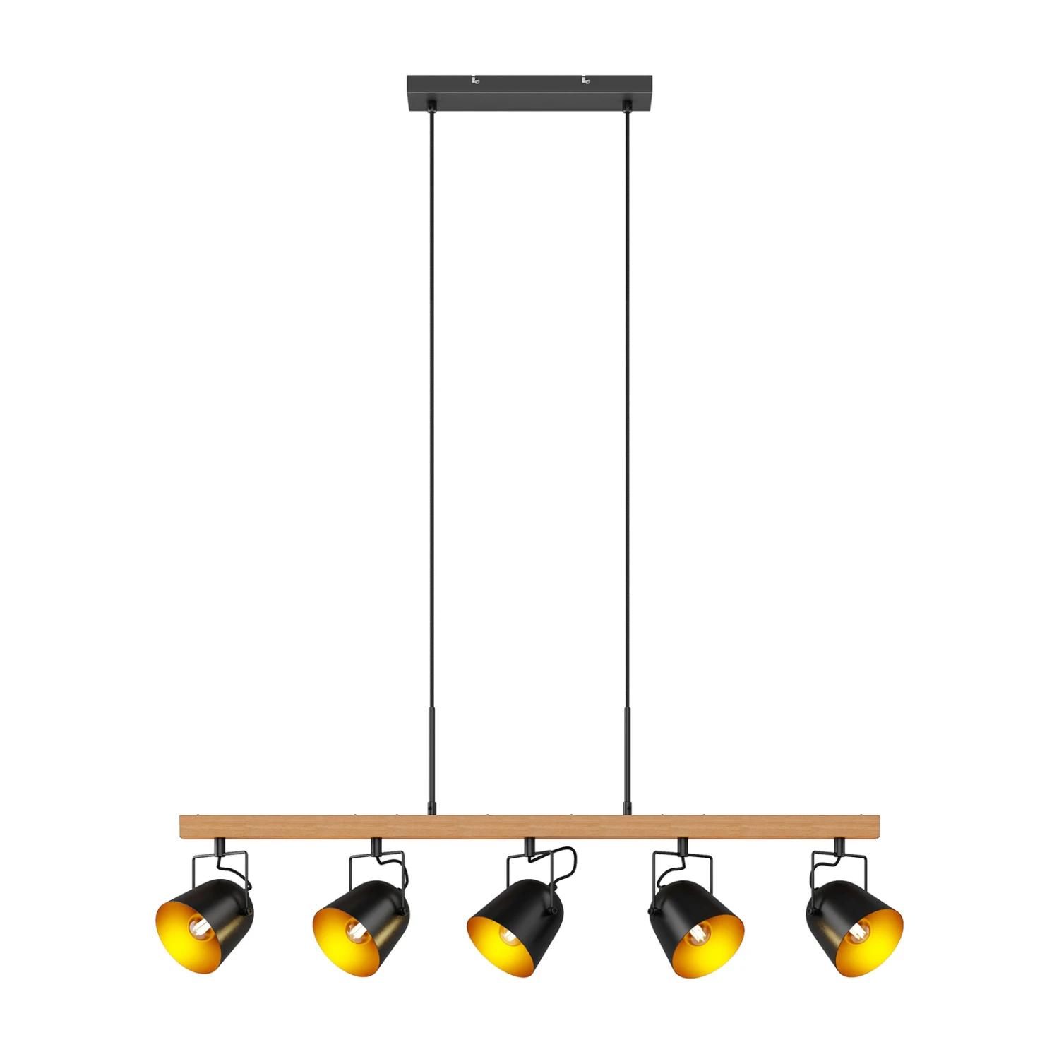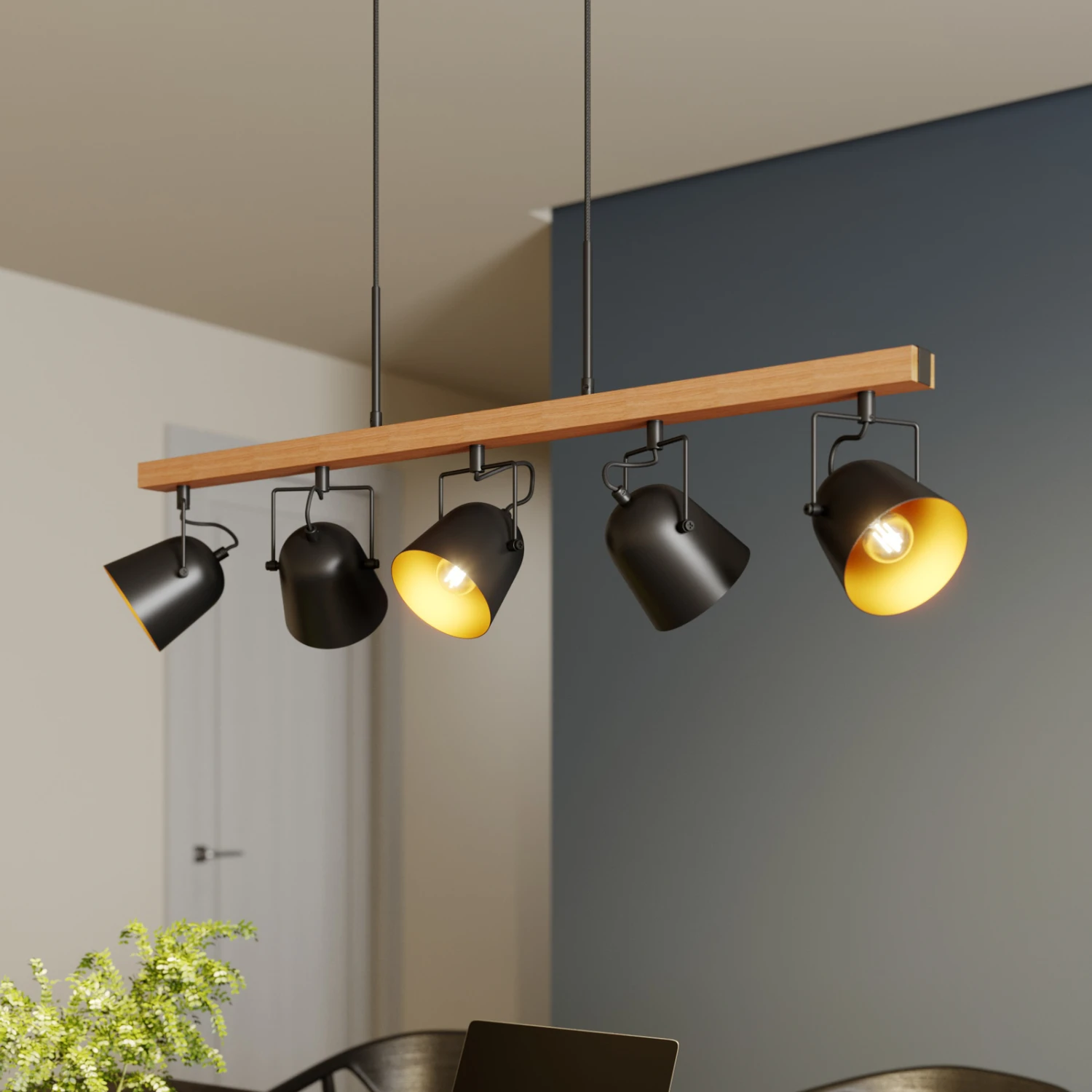 Lampe à suspension à cinq lampes Adalin en chêne et en acier avec un contraste de couleurs attrayant