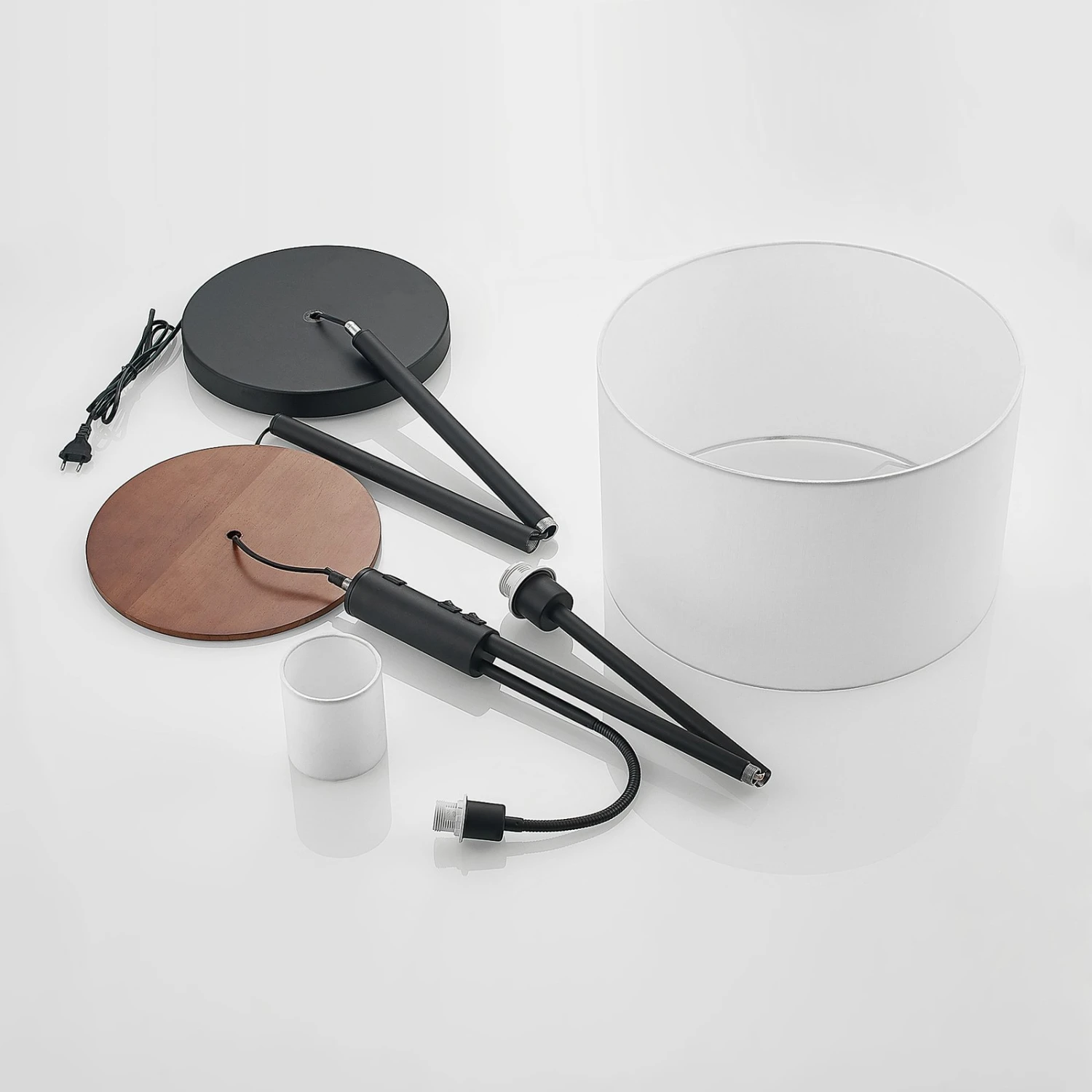 La lampe possède une surface de rangement intégrée sous la forme d’une plaque de bois ronde et un port USB. Elle peut ainsi également être utilisée comme station de recharge pour smartphones et autres appareils. Les deux sources lumineuses servent d’éclairage de base et également de lampe de lecture pratique. Aovan est un excellent complément pour les espaces de vie modernes et classiques.