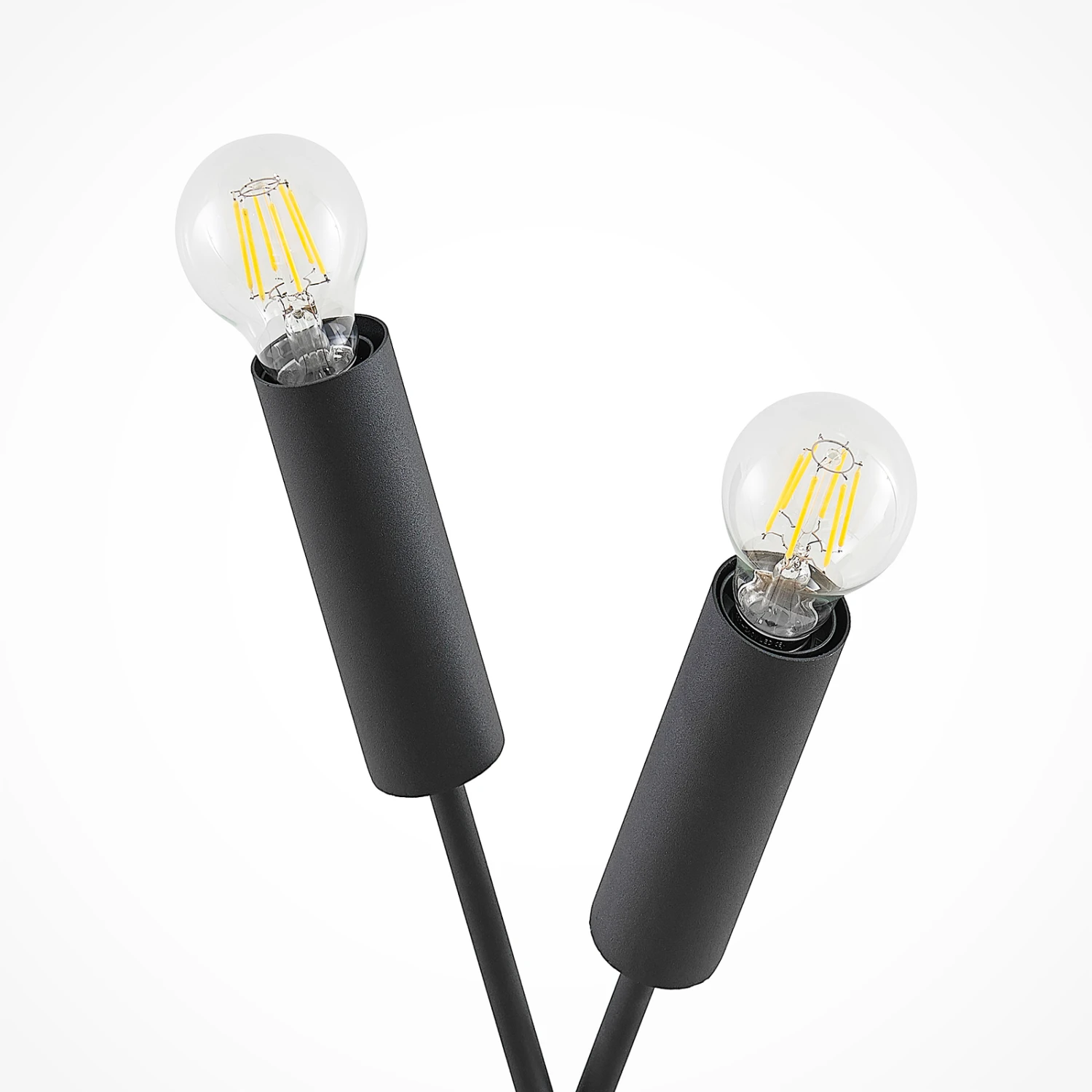 La lampe de table à deux flammes Belana peut être équipée de lampes jusqu’à 60 W avec douille E27. La photo montre des lampes LED teintées en gris avec technologie à filament.