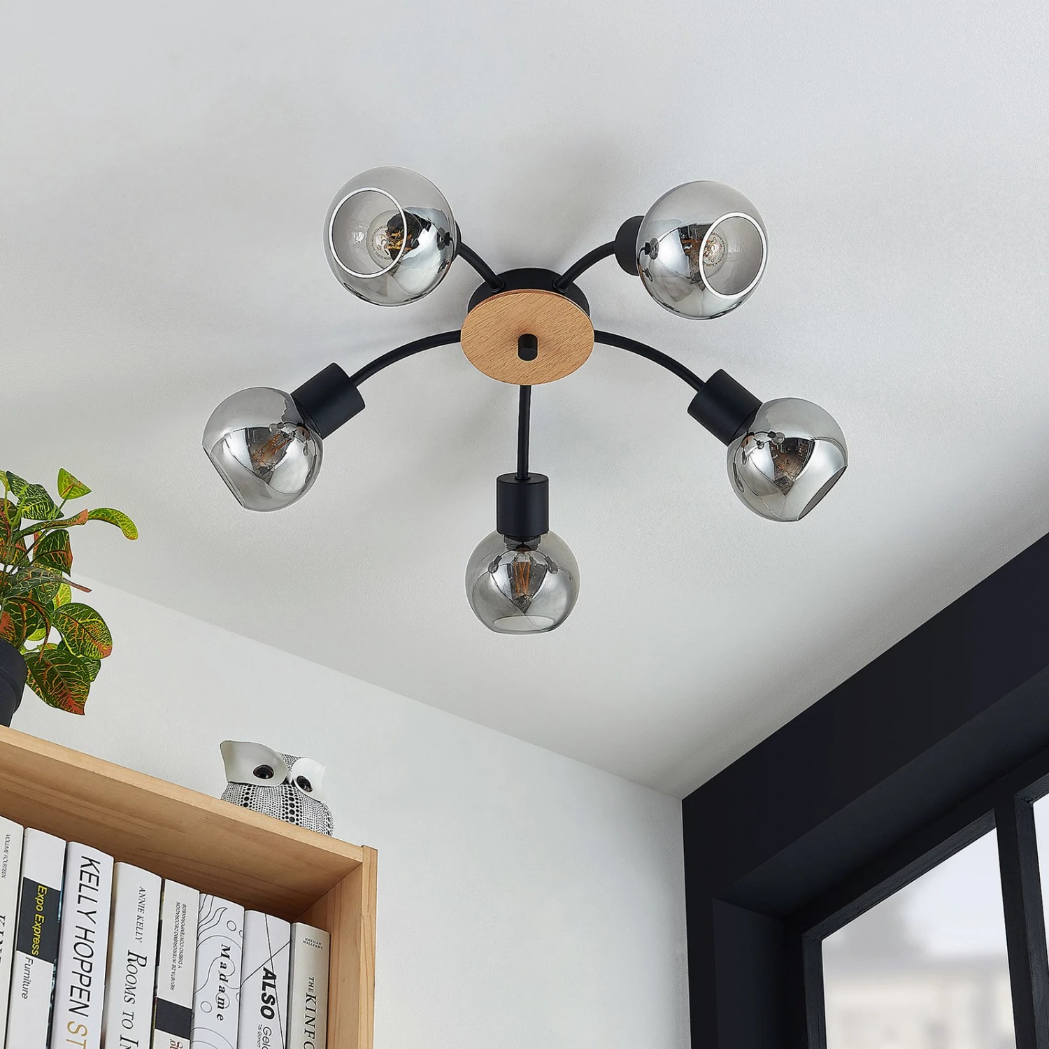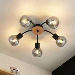Ce plafonnier aux formes élégantes crée une atmosphère agréable et un éclairage idéal dans votre maison. Le modèle Eridia peut être modulé en fonction de l’humeur de chacun à l’aide d’un variateur externe et crée une belle ambiance grâce à sa lumière blanc chaud. Le plafonnier convainc en noir, bois clair et verre fumé. Que ce soit dans la salle à manger ou dans le salon, ce luminaire fait vraiment bonne figure chez soi. Le modèle Eridia est équipé de cinq ampoules comprises dans la livraison. Il peut également séduire par son design moderne et dispose d’une douille E14. Toutes les qualités et les points forts de la marque Lindby sont réunis dans ce plafonnier. Le plafonnier a une forme particulière et peut également servir d’élément décoratif lorsqu’il est éteint.