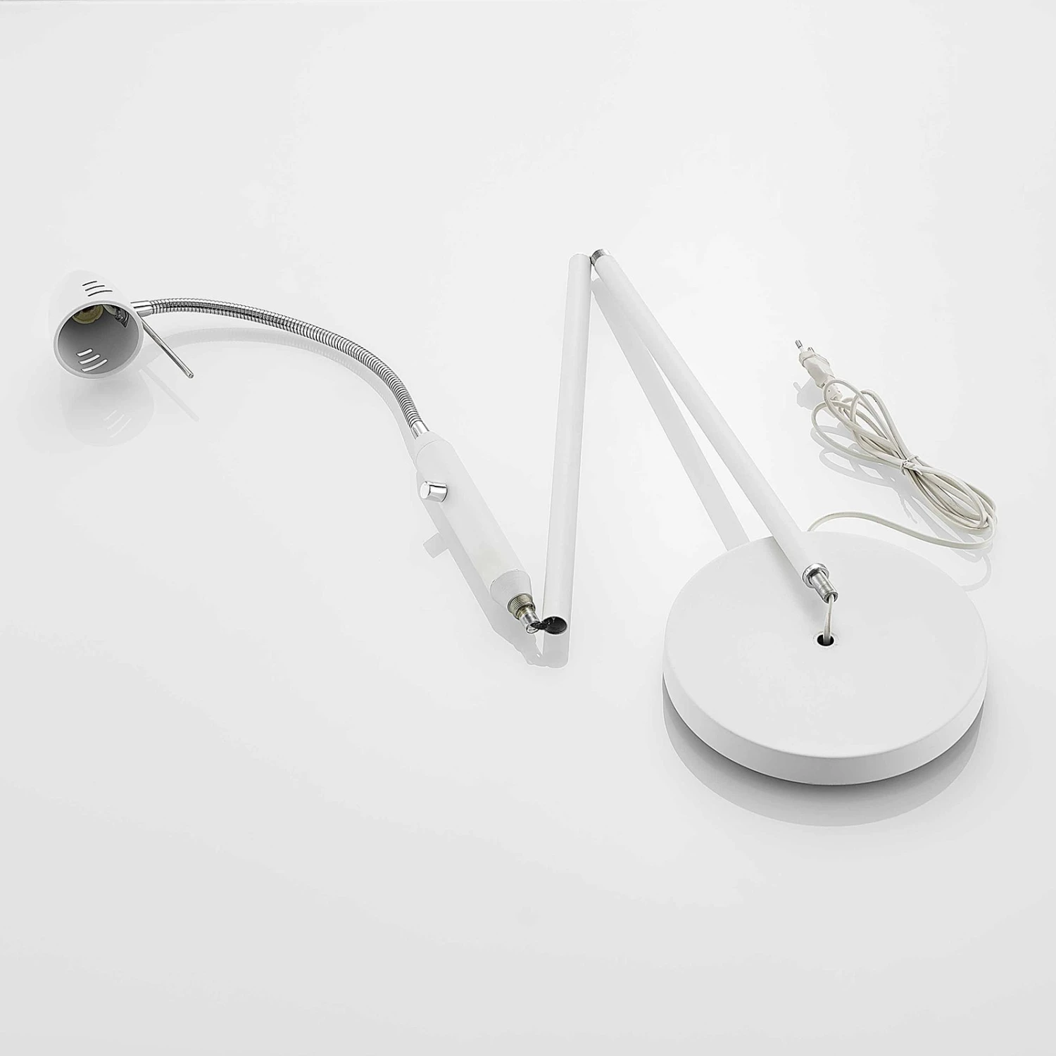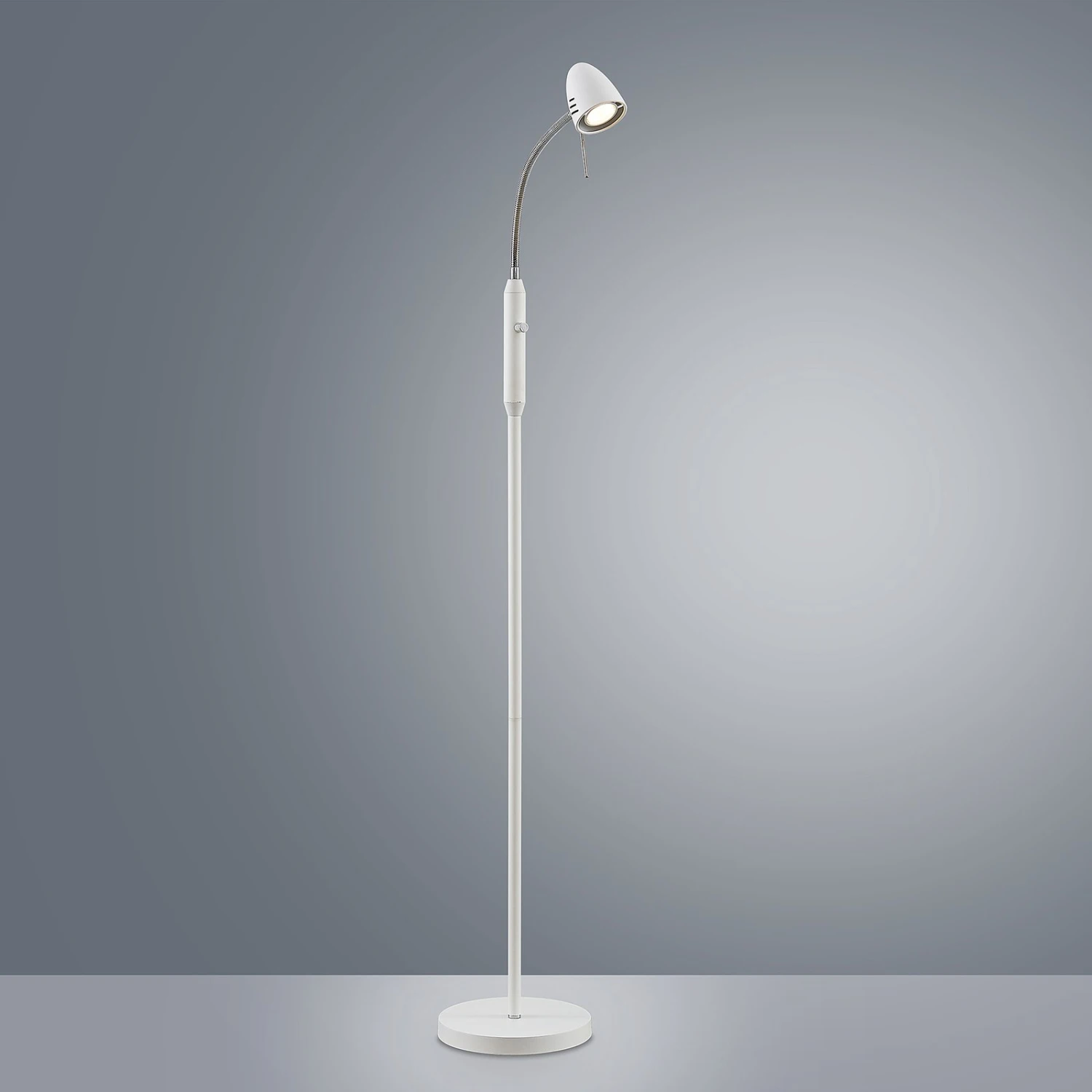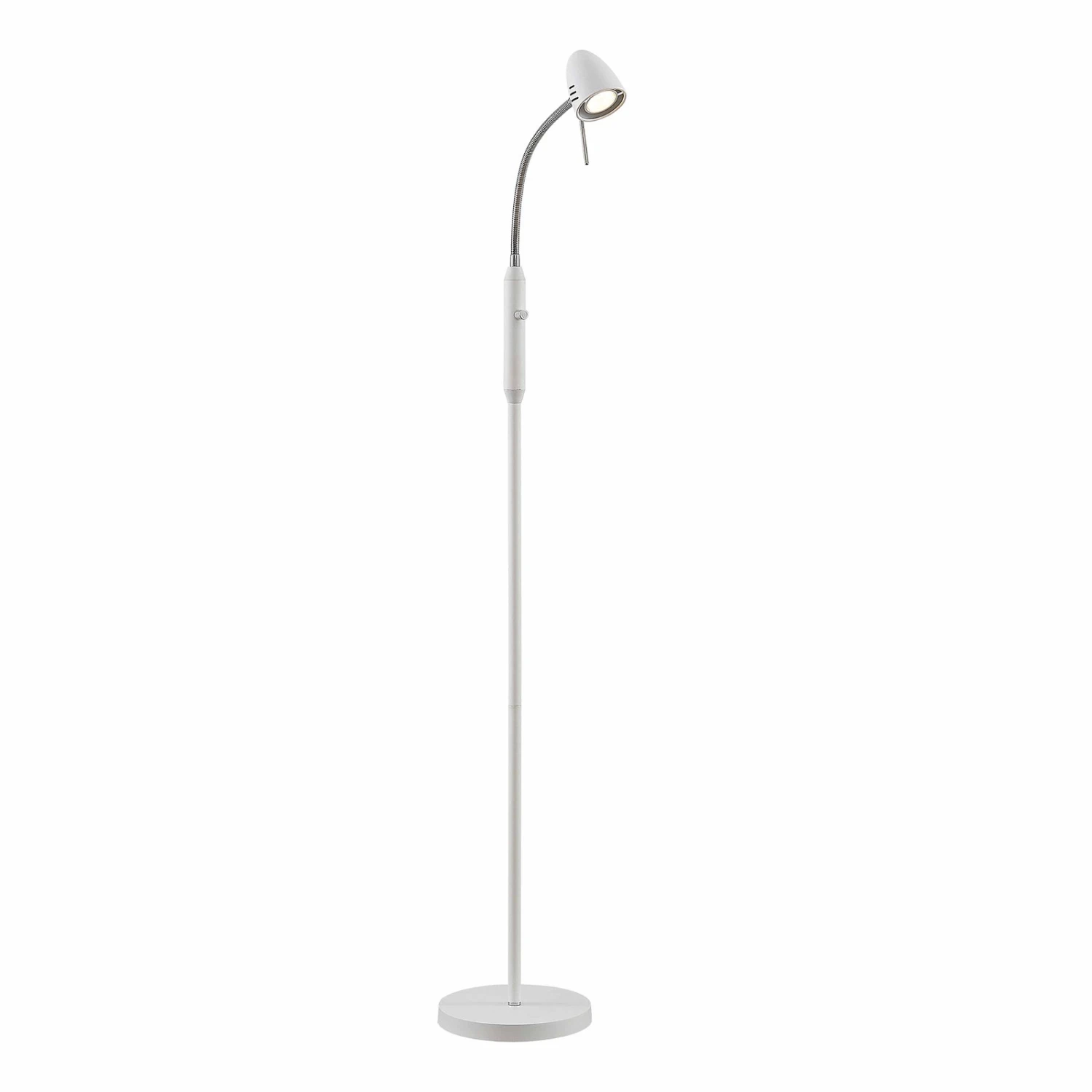 Lampadaire minimaliste Heyko, à intensité variableLe lampadaire moderne Heyko se compose d’un petit abat-jour de forme conique dont l’orientation de la lumière peut être modifiée grâce à une partie supérieure flexible. Grâce à la petite poignée fixée directement sur l’abat-jour, celui-ci peut être orienté vers le haut et vers le bas, mais aussi latéralement. Au centre de la lampe se trouve un interrupteur marche/arrêt qui fait également office de variateur. Il est ainsi possible, par exemple, de régler la luminosité ou d’allumer ou d’éteindre la lumière tout en étant assis, à condition d’équiper le luminaire d’une ampoule à intensité variable.