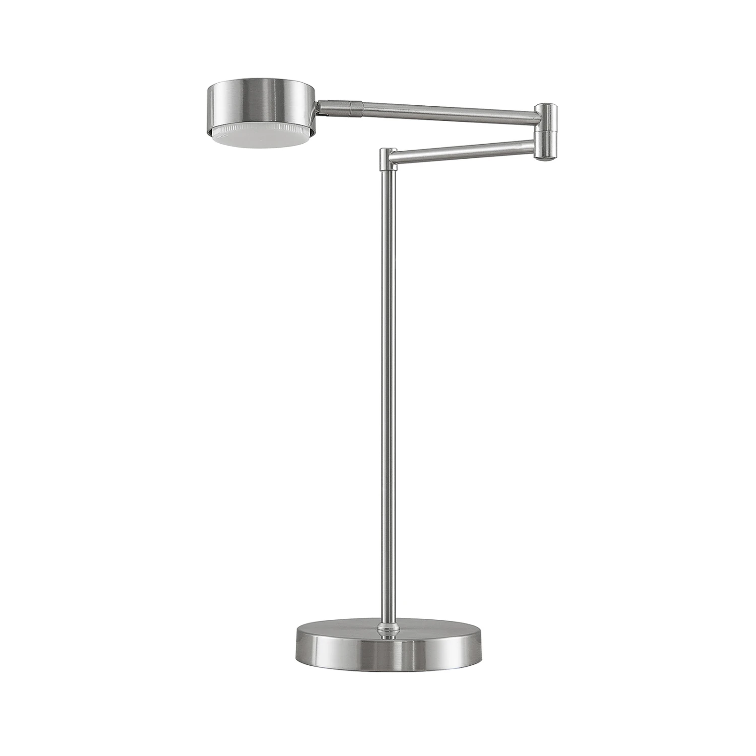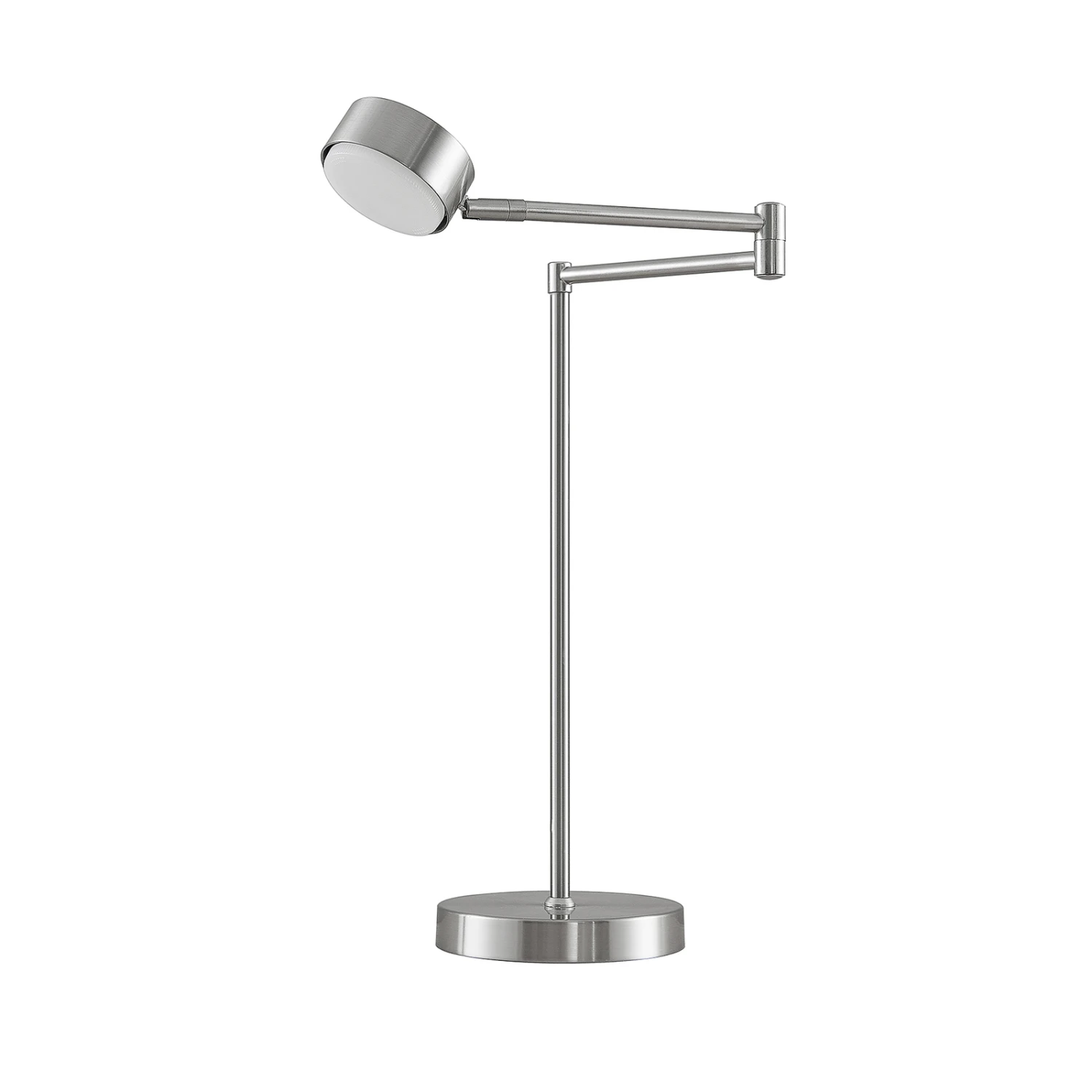 Lampe de bureau LED couleur nickel Kaylou avec tête lumineuse réglable Kaylou peut être placée sur un bureau et y constituer une source de lumière moderne dont l’orientation peut être modifiée. Pour ce faire, plusieurs articulations et tiges ont été fixées sur la tige, ce qui permet de rapprocher ou d’éloigner la tête lumineuse. La source lumineuse LED garantit en outre une consommation efficace et la finition nickel est agréablement intemporelle et peut s’intégrer dans de nombreux environnements. La lampe de bureau LED offre une lumière ciblée qui convient bien à la lecture et au travail.