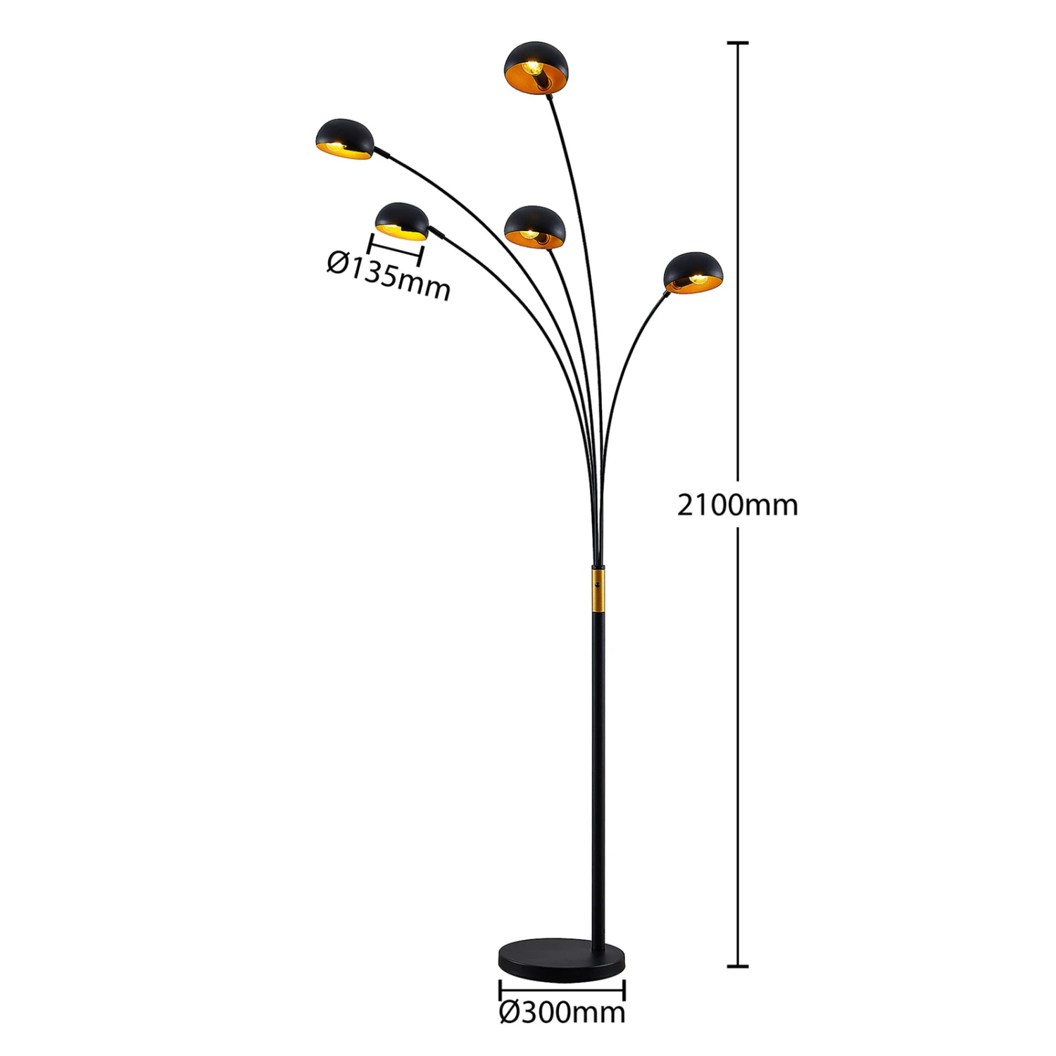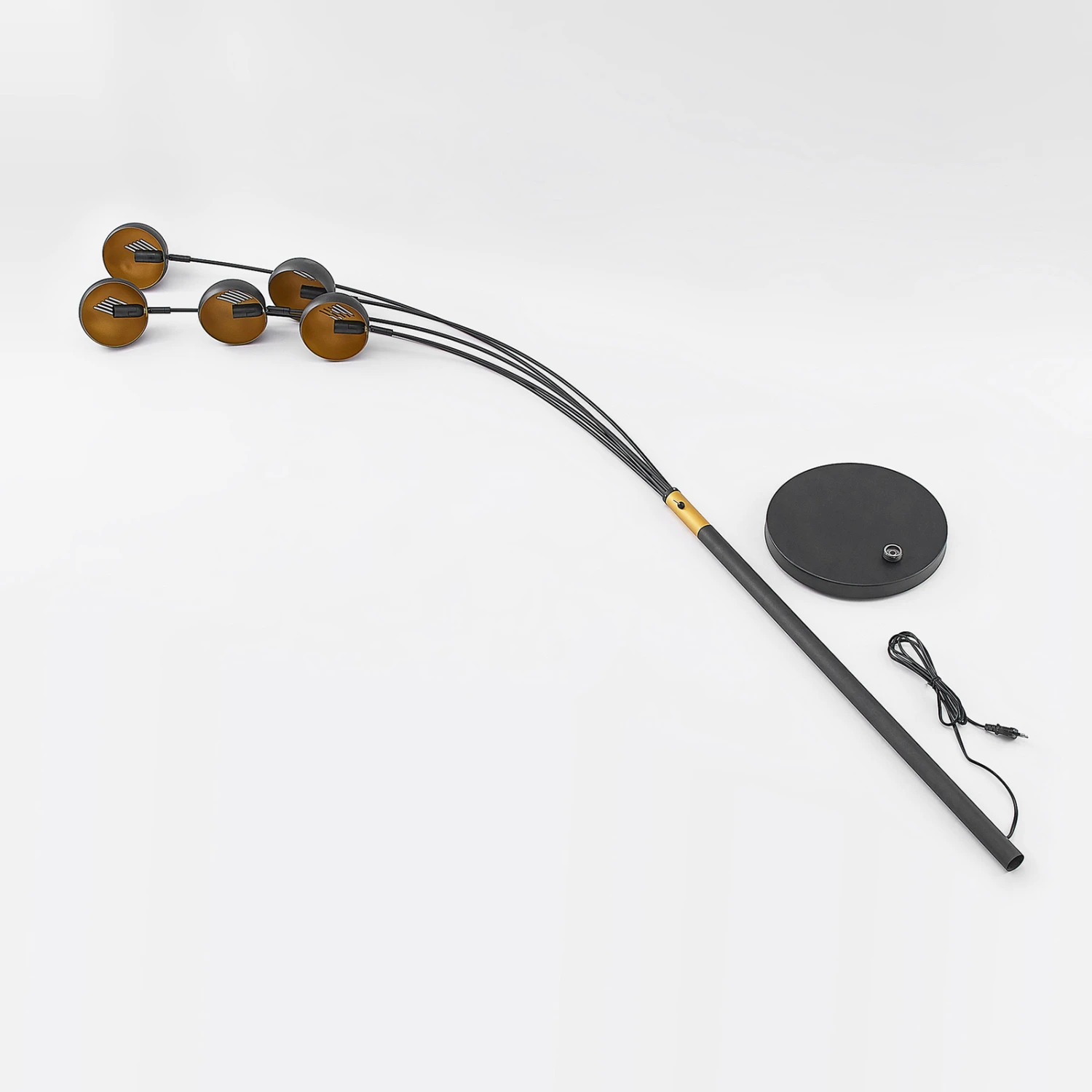 Le lampadaire Lamiras représente un design moderne et offre un bon éclairage grâce à ses cinq sources lumineuses. Ceux-ci peuvent être équipés d’ampoules E14 assorties. La lampe a été fabriquée en fer et possède une base stable de forme ronde.