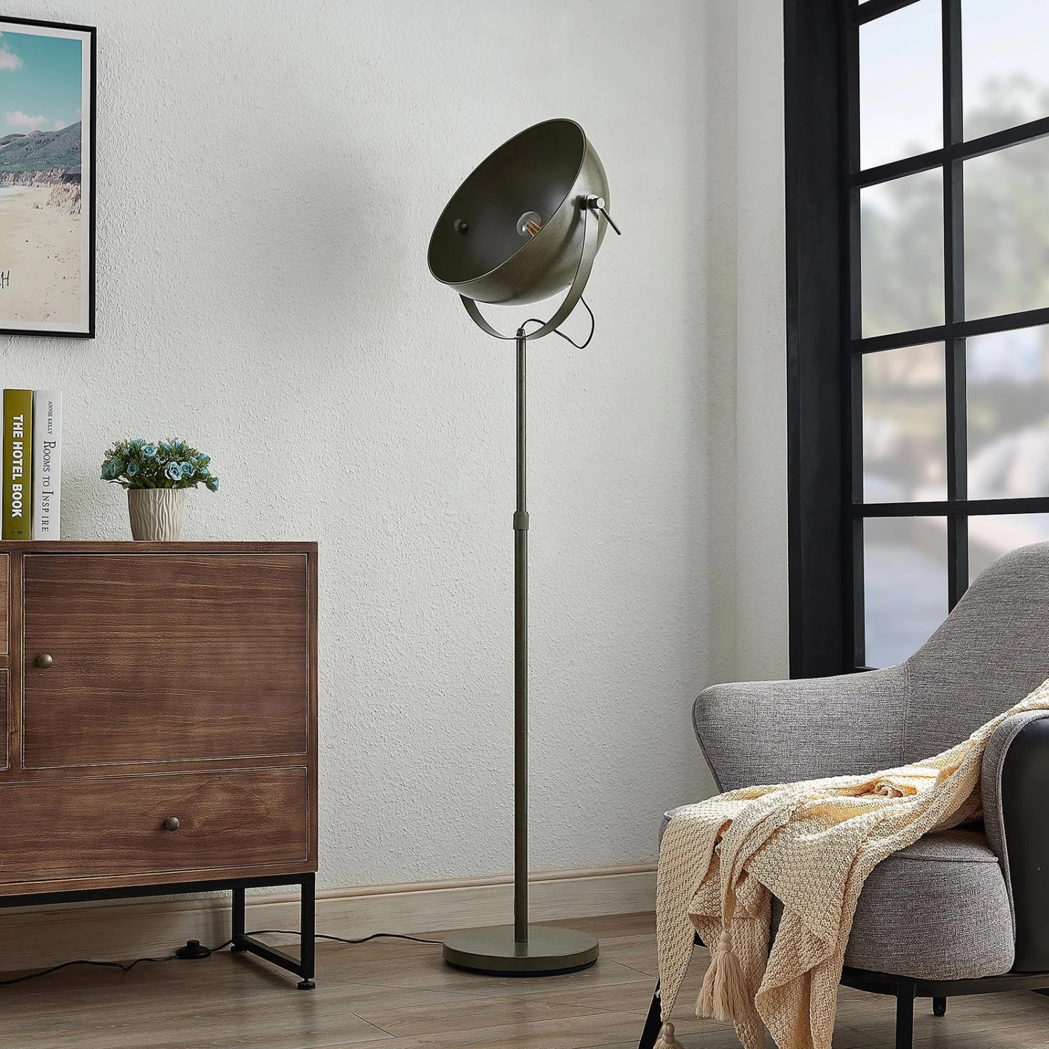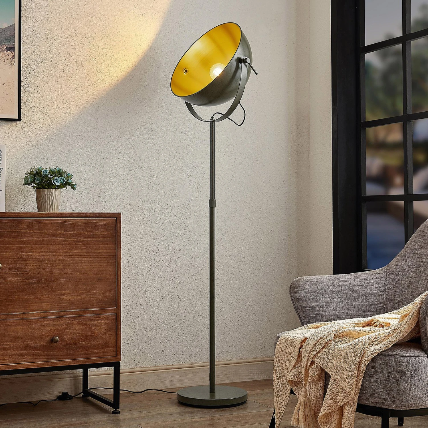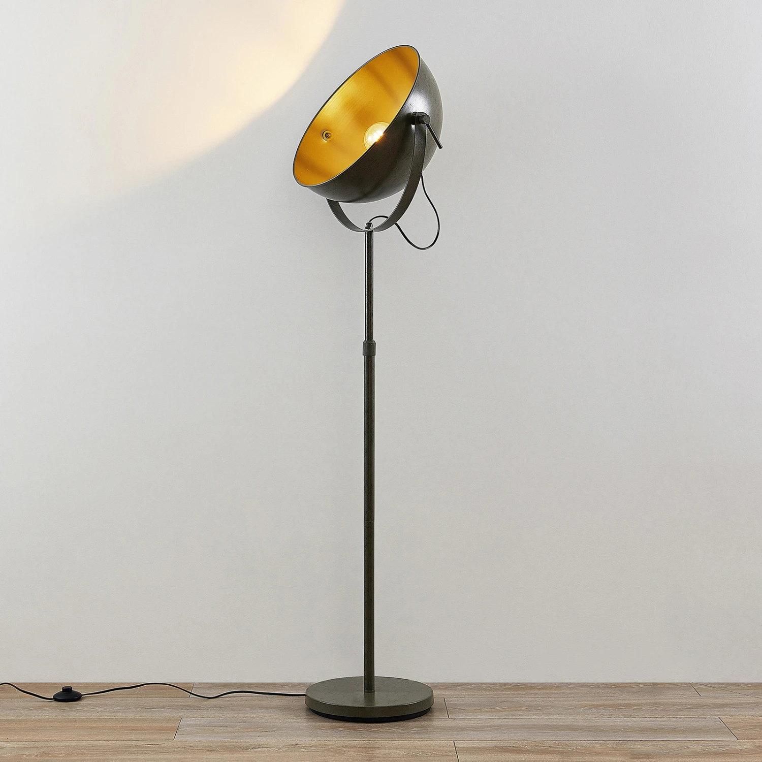 Lampadaire Muriel en gris foncé avec abat-jour en forme de coupole