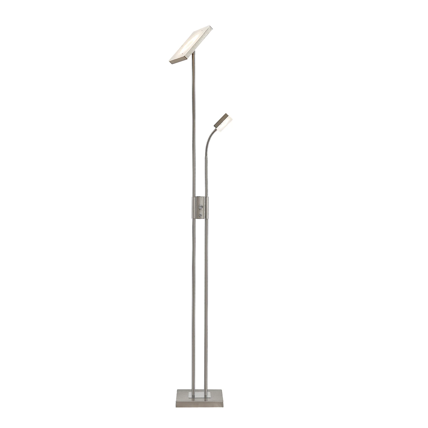 Lampadaire LED Seppa sobre avec deux sources lumineuses à intensité variableLe lampadaire LED Seppa possède deux sources lumineuses qui servent à la fois de plafonnier et de lampe de lecture. Elles ont une apparence carrée qui est complétée par le pied de lampe de forme carrée. Les lampes peuvent être commandées séparément à l’aide de deux interrupteurs placés à mi-hauteur. Il est également possible de faire varier l’intensité en continu, ce qui permet de créer une atmosphère agréable dans la pièce en un tour de main.