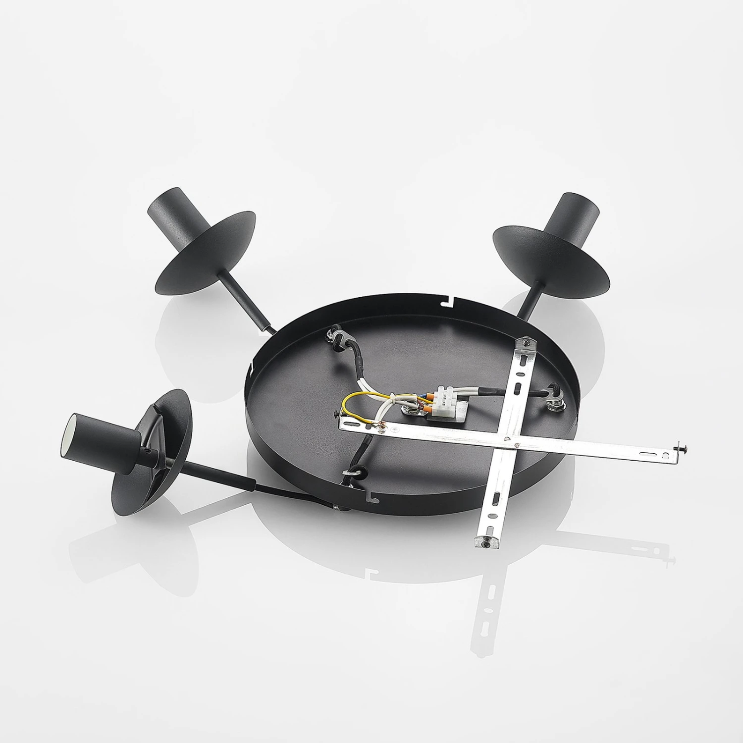 Teeja s’intègre bien dans les intérieurs modernes, mais possède également un certain charme vintage avec ses boules gris fumé. Celles-ci sont fabriquées en verre clair et donc relativement transparentes, ce qui se voit aussi bien lorsque la lampe est allumée que lorsqu’elle est éteinte. C’est pourquoi il convient de recourir à des lampes décoratives qui soulignent avec style l’aspect général de la suspension, comme le font par exemple les lampes à filament ou les lampes rustiques, qui sont conçues dans le style des anciennes lampes à incandescence, mais qui possèdent le plus souvent une technique LED efficace. La suspension est un élégant diffuseur de lumière pour l’espace de vie, où elle peut être utilisée par exemple sur la table à manger ou la table basse. Les boules pendent à différentes hauteurs de la plaque de plafond noire, ce qui donne un aspect particulièrement dynamique et individuel