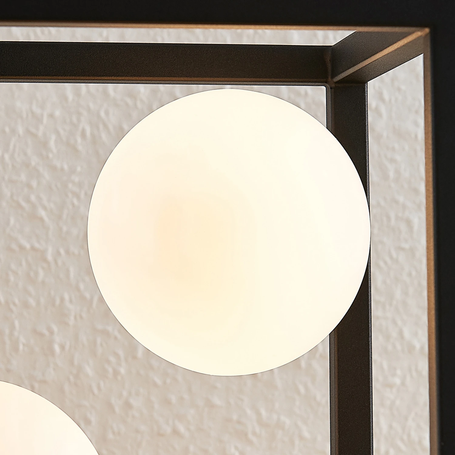 Utopia est une lampe de table au design futuriste. Elle se compose d’une structure métallique rectangulaire qui reproduit un parallélépipède. Sur les côtés, le support est ouvert. À l’intérieur des entretoises métalliques se trouvent quatre boules, qui tiennent chacune une douille. Chaque boule est en verre satiné. Cela permet une diffusion douce de la lumière blanche et chaude.