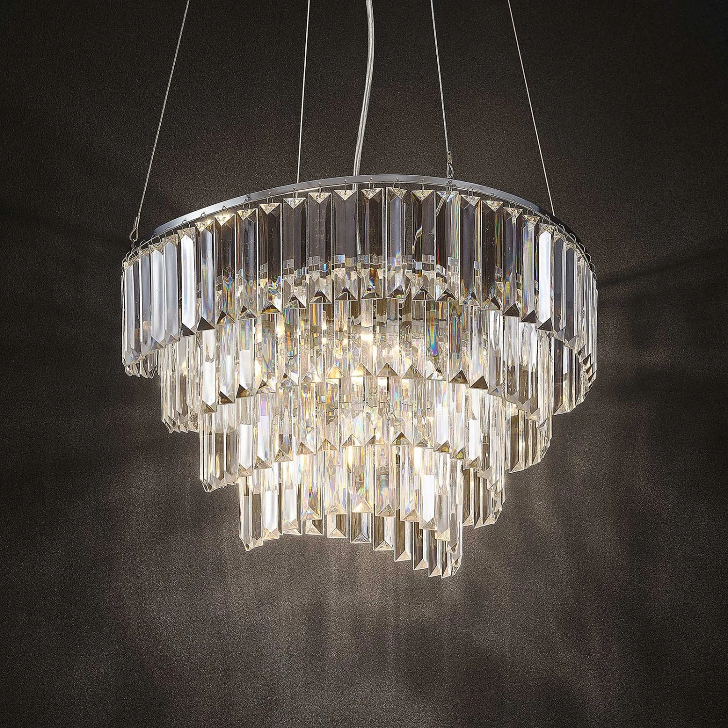 La lampe suspendue Volina en chrome crée des effets de lumière spéciaux