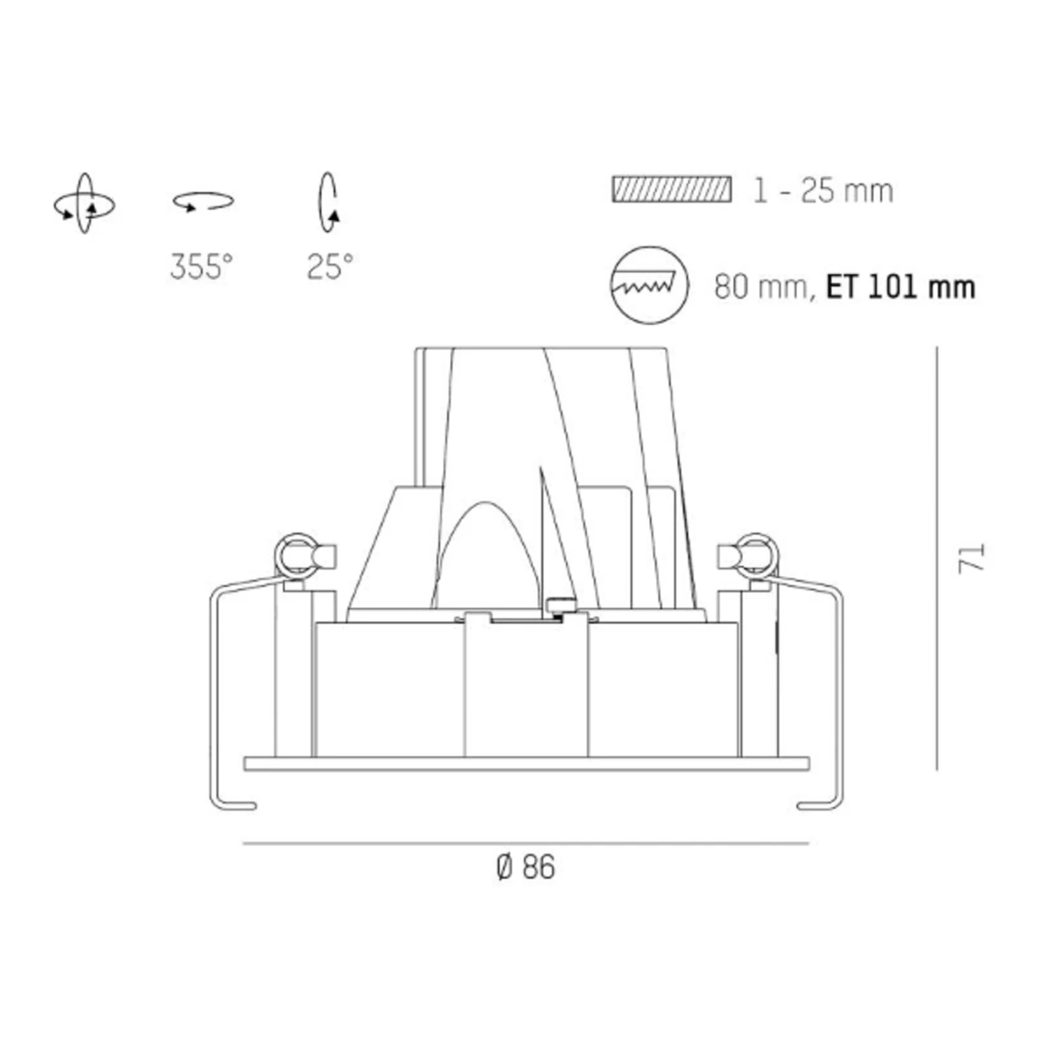 Spot LED encastré au plafond Dark Night Turn XS R pour un éclairage agréable et bienfaisant.