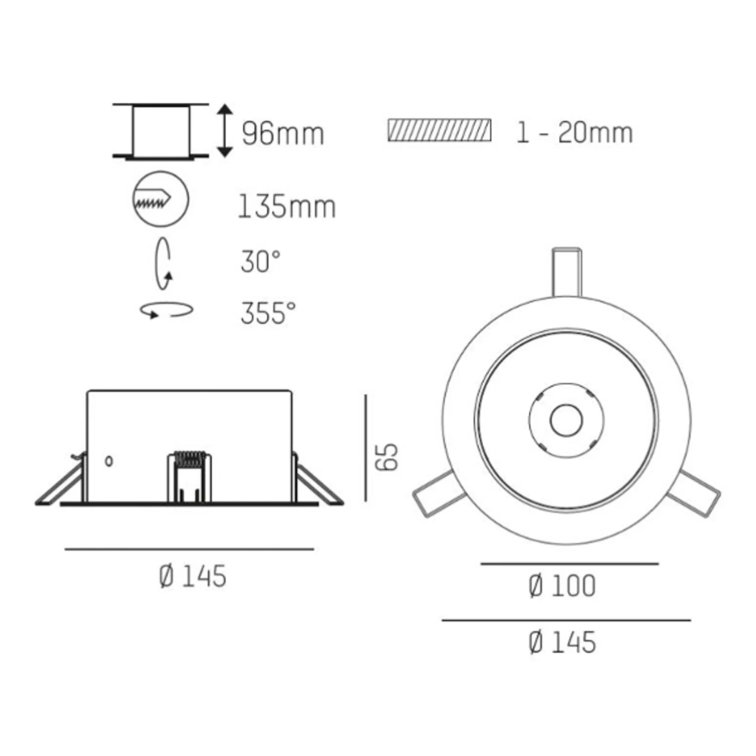 Spot encastré de plafond à LED Vibo R avec lumière blanche universelle