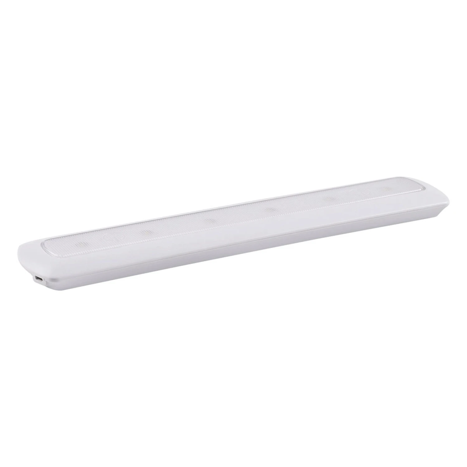 lampe de meuble Mobina Push 30 de 30 cm de long, alimentée par batterie La lampe de meuble Mobina Push 30, alimentée par batterie, est polyvalente et flexible. Elle peut être installée sous les armoires de cuisine, les étagères et autres meubles et fournit de la lumière indépendamment du courant secteur. La lampe peut être allumée et éteinte manuellement ou deux durées d’éclairage différentes (3 minutes ou 15 minutes) peuvent être réglées, de sorte qu’elle s’éteigne automatiquement après cette durée d’éclairage. Avec bande autocollante et support magnétique – donc montage flexible. – Livré avec câble USB pour recharger les batteries (Li-Ion)