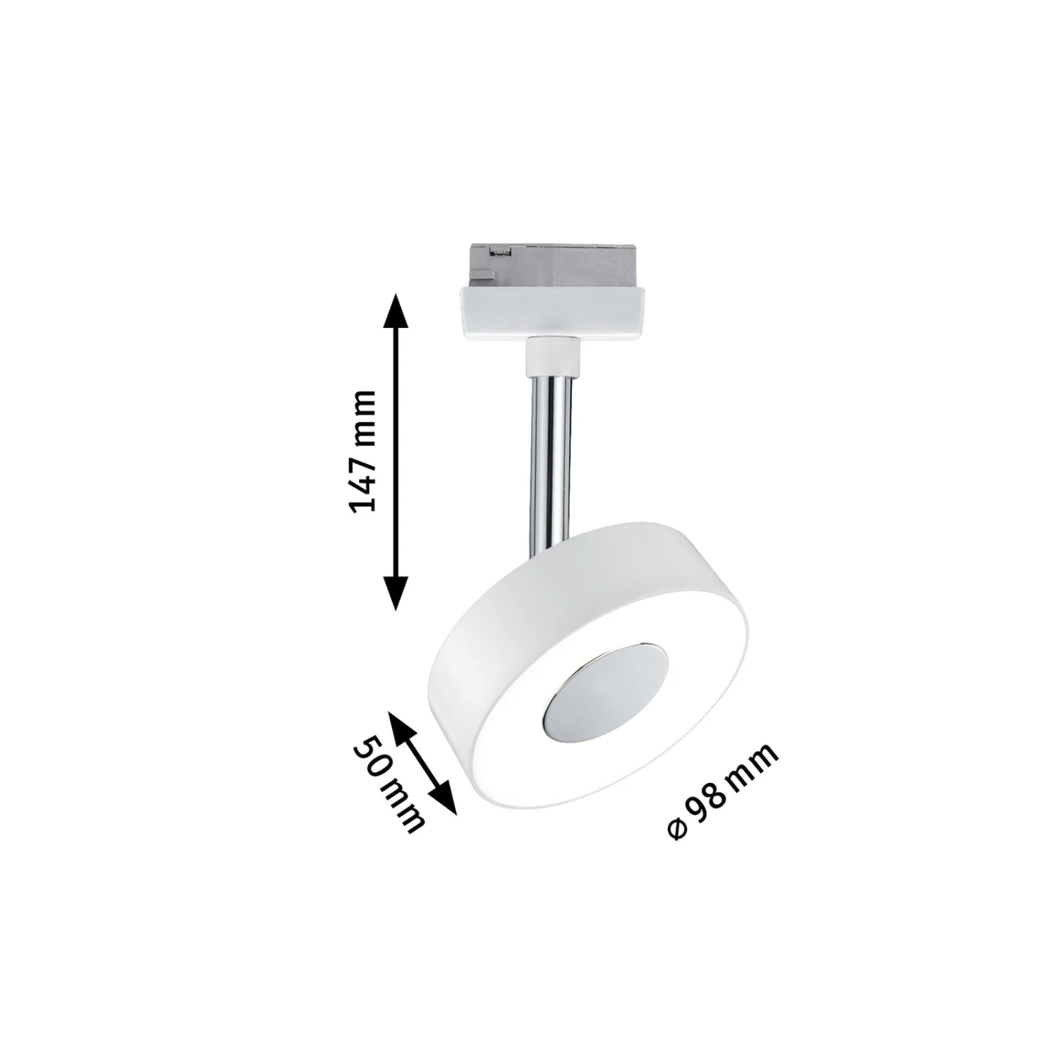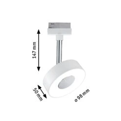 Le spot LED Circle rond et blanc peut se placer sur des systèmes de lampes sur rail URail adaptĂ©s Ă l’Ă©clairage de n’importe quelle pièce. La LED intĂ©grĂ©e diffuse une lumière blanc chaud chaleureuse de 2 700 K. Grâce au diffuseur satinĂ©, la lumière est diffusĂ©e dans un angle de 90° sans Ă©blouir.