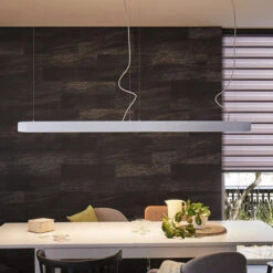 Cette suspension Barre offre une autre option avec l’utilisation dans un système de lampes sur rail URail de Paulmann. Elle permet même de relier plusieurs lampes Barre, en enlevant les capuchons d’extrémité et en enfichant les luminaires. Cela se révèle bien pratique surtout pour illuminer de longues tables dans leur ensemble. En plus du système de lampes sur rail URail, la mise en service nécessite également six ampoules GU10.
