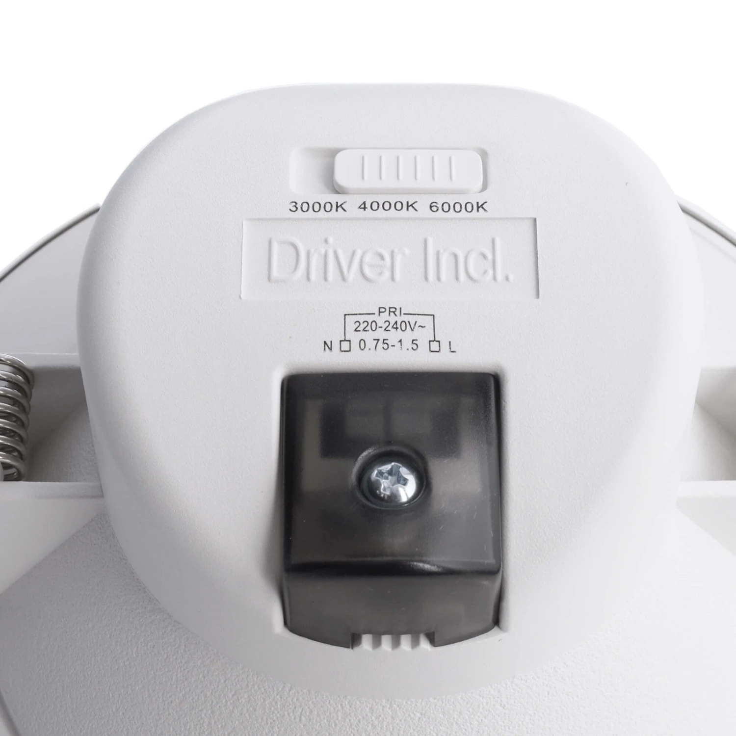 Plafonnier encastré rond à LED Acrux avec température de couleur réglableAcrux est fabriqué en plastique blanc et est livré avec un anneau de recouvrement noir profond. Le plafonnier encastré à LED, adapté au raccordement direct 230 V, convient à de nombreuses applications : dans la cuisine, la cage d’escalier ou le couloir, ainsi que comme éclairage de magasin ou de couloir dans le secteur commercial. Un interrupteur Dip permet de sélectionner la température de couleur à trois niveaux dans la gamme des couleurs de lumière blanc chaud, blanc universel et lumière du jour. La lumière peut en outre être graduée à l’aide d’un variateur à angle de phase ou à coupure de phase disponible sur place.- Angle de rayonnement : 90°- Temps d’allumage 60 % flux lumineux : 0,5 s- Temps d’allumage : 0,5 s- Emission lumineuse : symétrique- Mode de fonctionnement : à tension constante- Température de fonctionnement : -5 °C – 40 °C- Facteur de puissance PF : 0,90- Intensité lumineuse : 505 cd