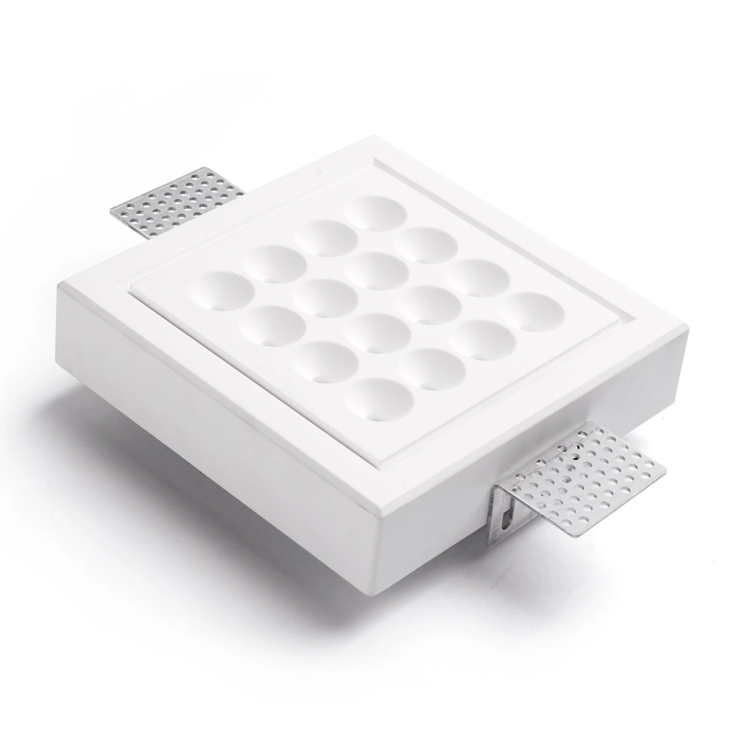 Le plafonnier encastré Ade LED est fabriqué en plâtre de haute qualité et peut être facilement intégré dans des plafonds lumineux. Toutefois, le cadre peut être peint de n’importe quelle couleur après l’installation, ce qui rend les applications possibles encore plus flexibles.