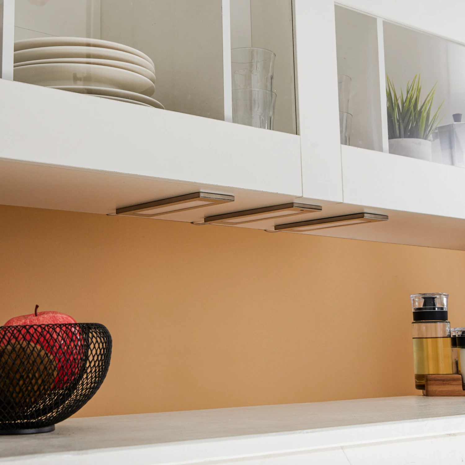 Lampes LED sous l’armoire en acier inoxydable Juska en set de trois pièces, pratiques pour la cuisineJuska convainc par son design moderne et rectiligne et est une lampe LED sous l’armoire qui peut être utilisée facilement, surtout dans la cuisine. Le set comprend trois luminaires, dont l’un est le luminaire principal, qui porte l’interrupteur et le répartiteur permettant d’établir la connexion avec les deux autres luminaires. Le design en acier inoxydable de Juska donne une impression de qualité et de modernité, tandis que les LED efficaces assurent une lumière claire mais économique sur le plan de travail.