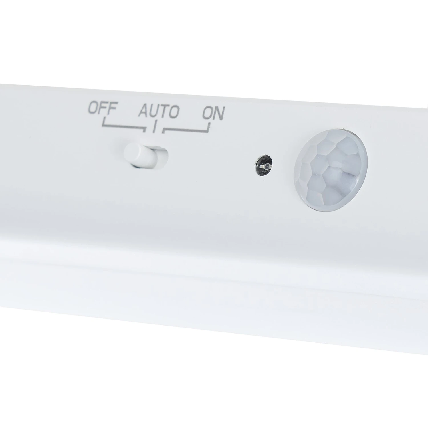 Luminaire LED sous armoire allongé Labino avec capteur intégré, fonctionnement sur pilesLabino peut être utilisé à de nombreux endroits dans l’habitat et éclaire particulièrement bien les surfaces de travail en tant que luminaire LED sous armoire, même si aucun raccordement électrique fixe n’est disponible à cet endroit. La surface du luminaire est blanche et sa forme carrée est très intemporelle. La lampe fonctionne avec des piles (3 x AAA, non incluses) et dispose d’un capteur intégré qui permet à la lampe de s’allumer d’elle-même lorsqu’un mouvement est détecté. De plus, elle peut aussi être commandée par l’interrupteur et être allumée ou éteinte manuellement.