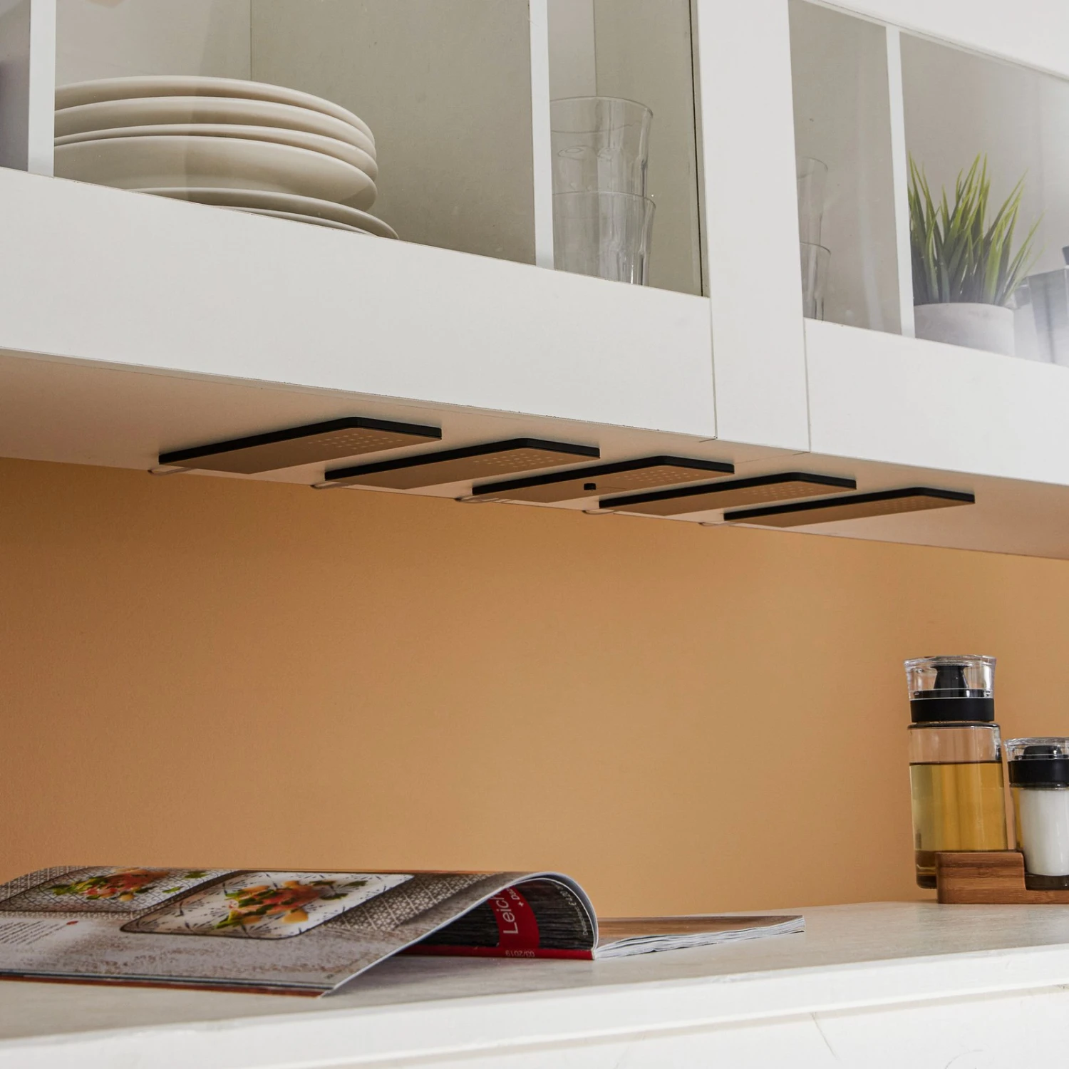 Set moderne de 5 éclairages LED sous le plan de travail : les éclairages noirs sous le plan de travail RixaCe set pratique comprend cinq éclairages LED sous le plan de travail à l’allure moderne et marquante. Ils peuvent tous être installés côte à côte sous un meuble haut dans la cuisine ou dans un bureau et sont tous d’un noir brillant, ce qui leur donne un look élégant. Avec leur bonne puissance d’éclairage et leur faible consommation, ils sont particulièrement économiques et efficaces et peuvent éclairer clairement le plan de travail. L’un des luminaires sert de luminaire principal et intègre l’interrupteur qui permet d’allumer et d’éteindre tous les luminaires. De plus, le distributeur multiple, qui permet de relier tous les autres luminaires, se trouve également sur ce luminaire. Le raccordement du luminaire se fait par une fiche européenne, ce qui évite un câblage compliqué et permet une installation en un tour de main.