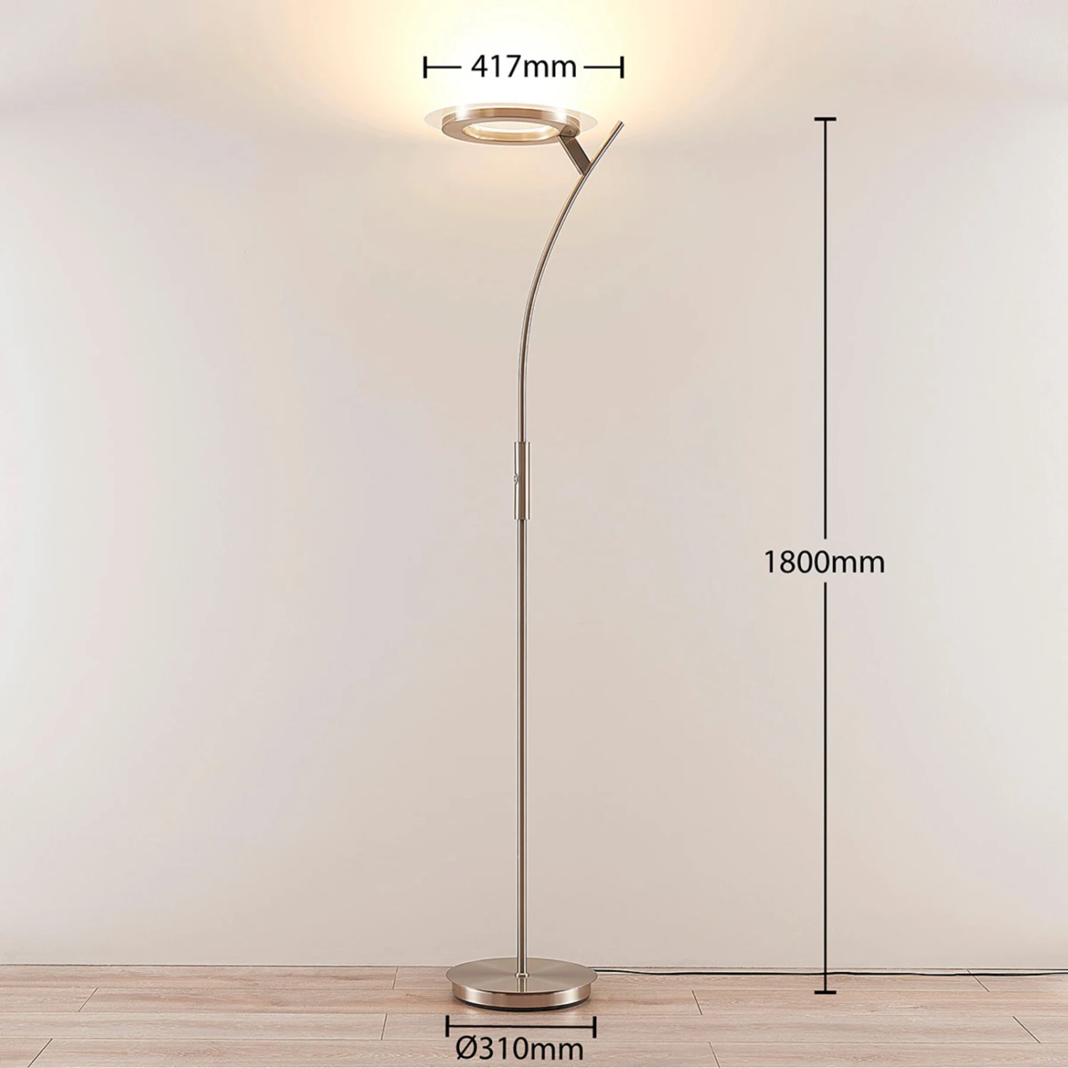 Avec son mode d’éclairage indirect, Darion se prête très bien aux pièces de vie auxquelles il offrira un éclairage bienveillant. Le soir, il pourra aussi faire office d’éclairage d’accentuation, notamment car il est dénué de tout effet éblouissant. Un bouton-variateur intégré permet d’ajuster l’intensité lumineuse en fonction des besoins. Le cordon d’alimentation a une longueur de 180 cm. Un beau luminaire pour votre séjour, doté d’une touche un peu moderne.