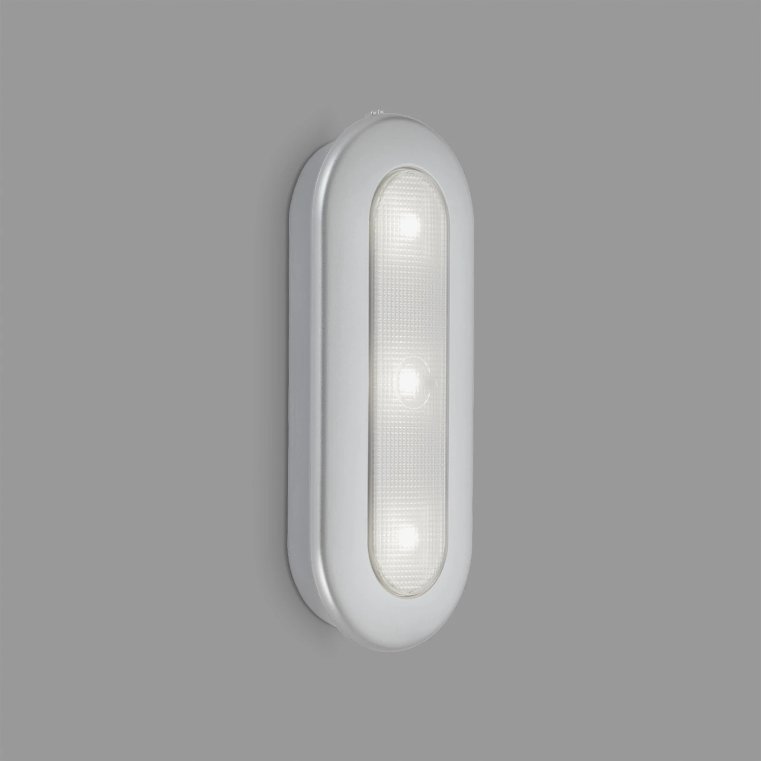 La LED Push-Light Row se compose d’un boîtier en plastique de couleur argentée dans lequel sont intégrées des LED blanches du jour. L’allumage et l’extinction de la lumière se font par un mouvement de poussée. L’interrupteur sur le côté permet d’activer la fonction de minuterie. Quatre modes sont disponibles : allumé en permanence – 1 minute – 5 minutes – 15 minutes. Un patch adhésif et des vis pour le montage sont déjà inclus dans la livraison, ainsi que 3 piles AA.