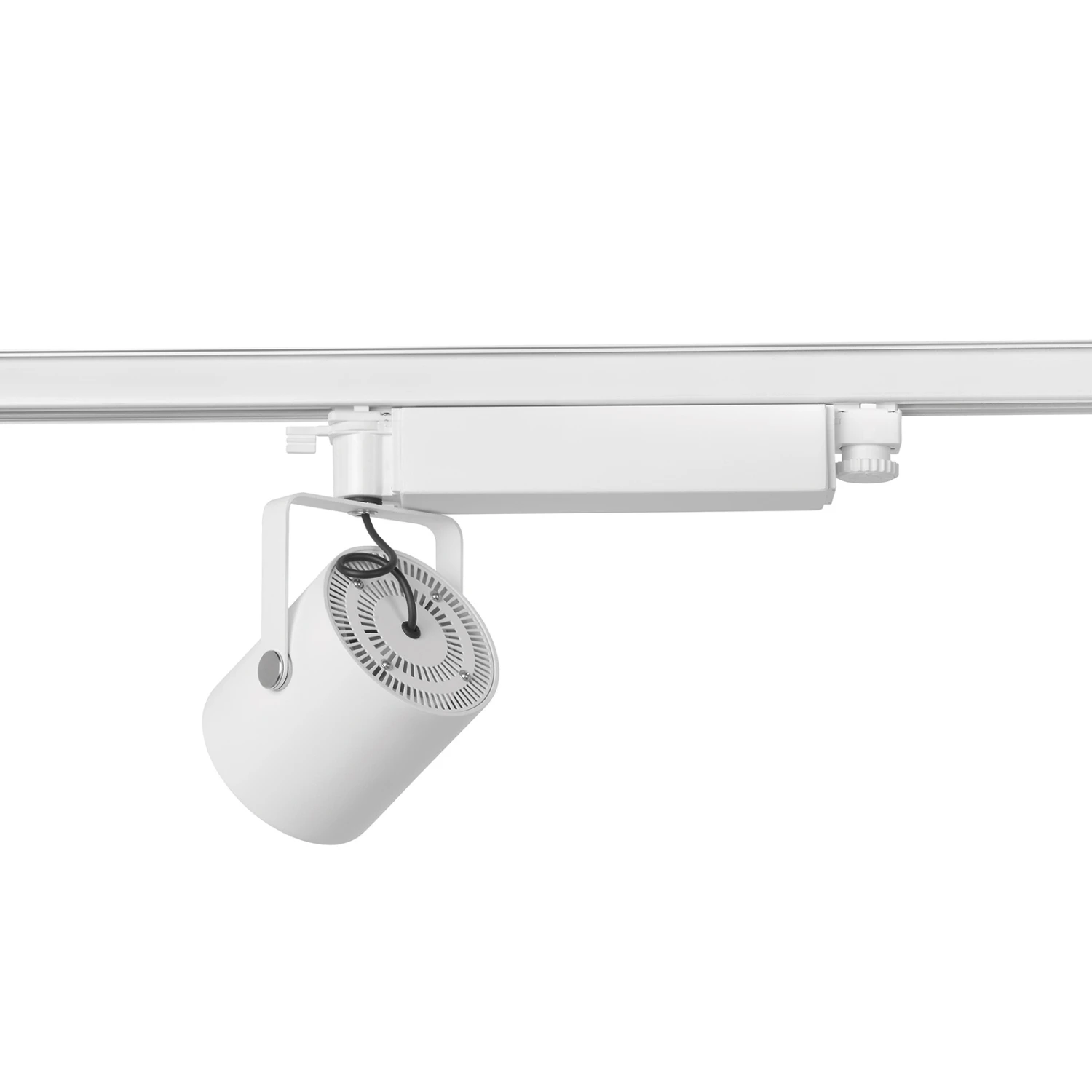 Le projecteur à LED Avior Track peut être intégré dans un rail triphasé qui peut soit être suspendu au plafond, soit être monté directement au plafond. Le spot peut être tourné jusqu’à 350° et orienté jusqu’à 270°. La lumière est diffusée dans un angle de 40° par un réflecteur en aluminium à facettes.