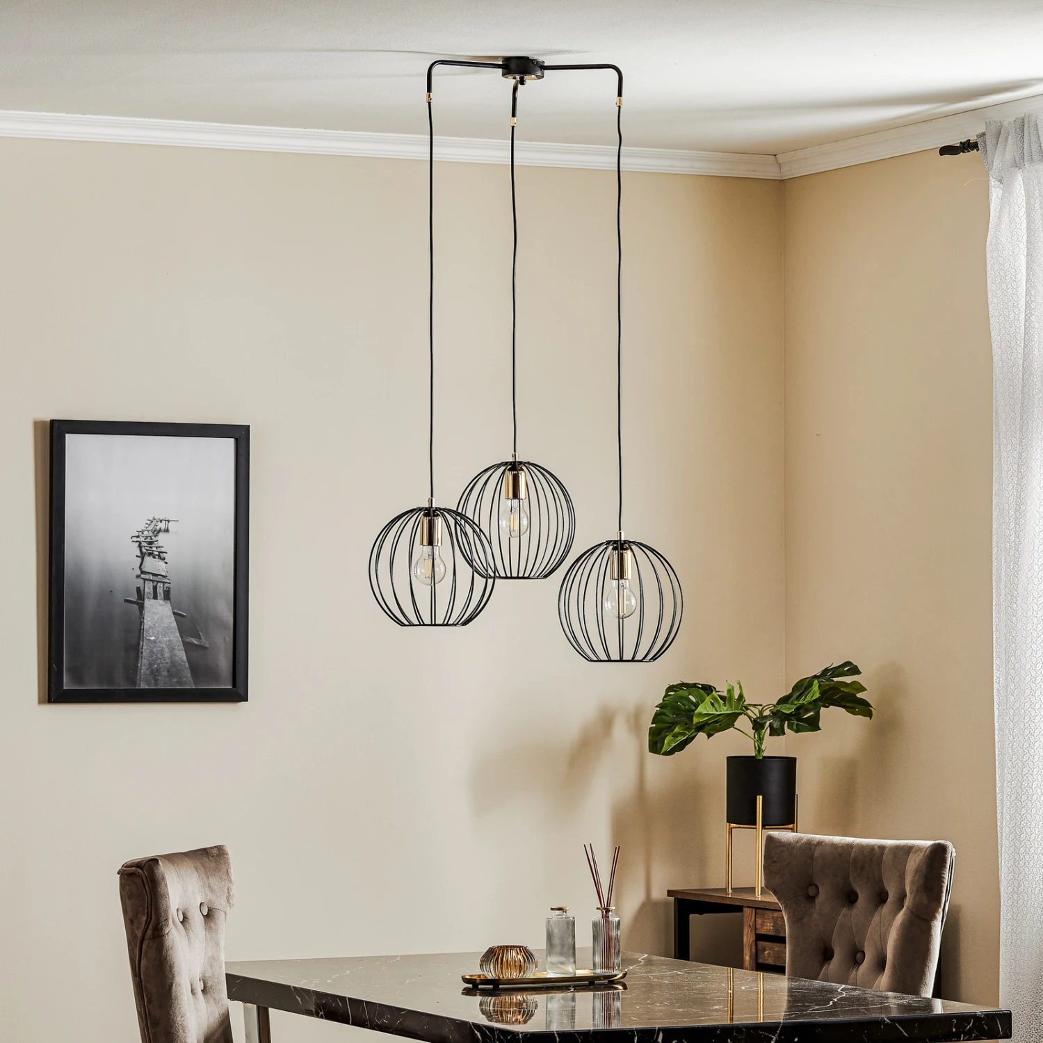 Suspension Albio 3, à 3 Lampes En Noir