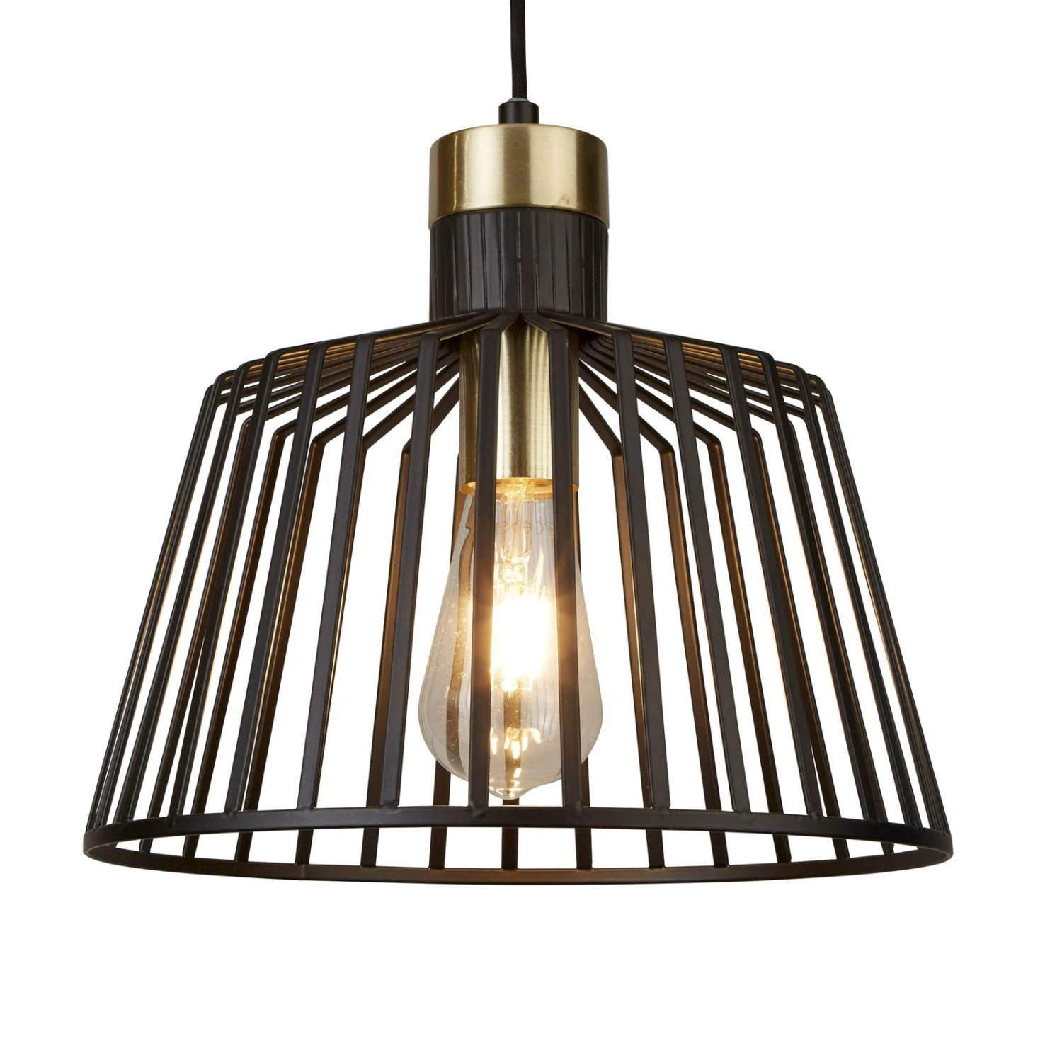 La suspension Bird a été fabriquée dans un design tendance en forme de cage avec un abat-jour composé de nombreuses entretoises métalliques noires, ce qui lui a finalement valu son nom. Le détail en laiton mat sur la suspension est très décoratif et la douille de la lampe au milieu de l’abat-jour a également été conçue dans cette couleur contrastée. Pour parfaire le bel aspect de cette lampe, il convient de l’équiper d’une ampoule à l’aspect filament.